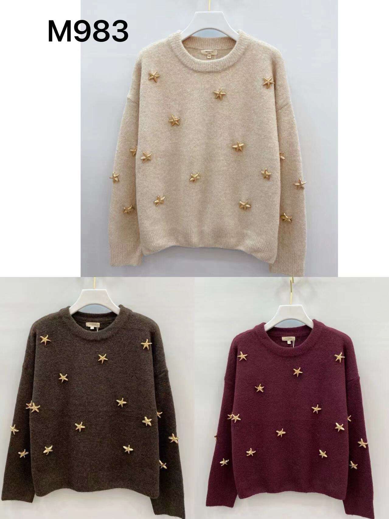 Swetry SCARABELL to propozycja, która wyróżni każdy butik i sklep z odzieżą damską! Ten model zachwyca nie tylko modnym, swobodnym fasonem, ale i starannym wykonaniem z wysokiej jakości materiału – zapewniającymi komfort noszenia przez cały dzień. Unikalne aplikacje w kształcie gwiazdek dodają charakteru i modowego twistu. Dostępny w trzech najmodniejszych kolorach sezonu: czekoladowym, bordo i beżu, oraz w szerokiej gamie rozmiarów, dzięki czemu łatwo dopasować go do potrzeb każdej klientki. Sweter perfekcyjnie łączy się zarówno z jeansami, jak i eleganckimi spódnicami – sprawdzi się na co dzień, do pracy, jak i na mniej formalne wyjścia. Wzbogać swoją ofertę o bestsellerowy model, który przyciągnie wzrok i zwiększy sprzedaż!