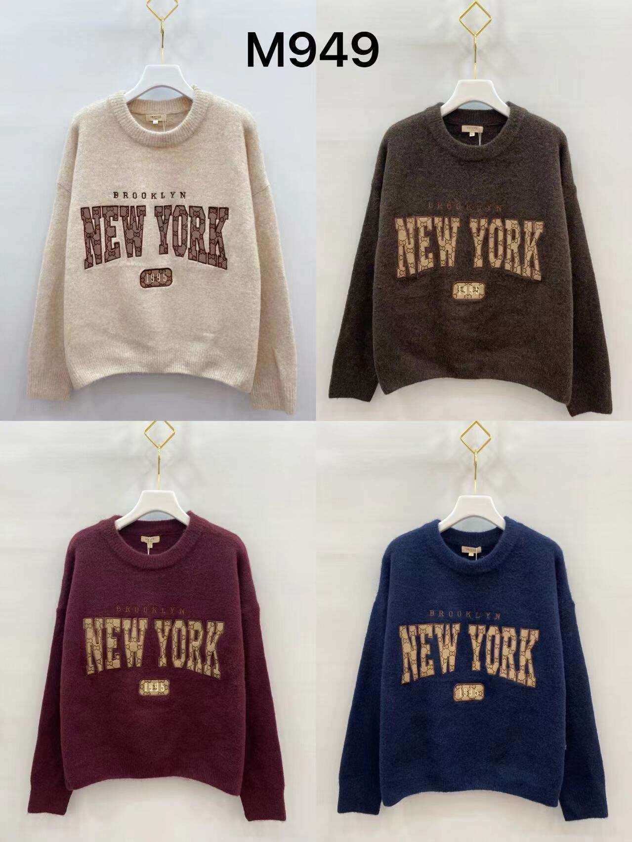Modny sweter z miękkiej dzianiny, oversize, z unikatowym napisem NEW YORK. Komfort i styl na co dzień.