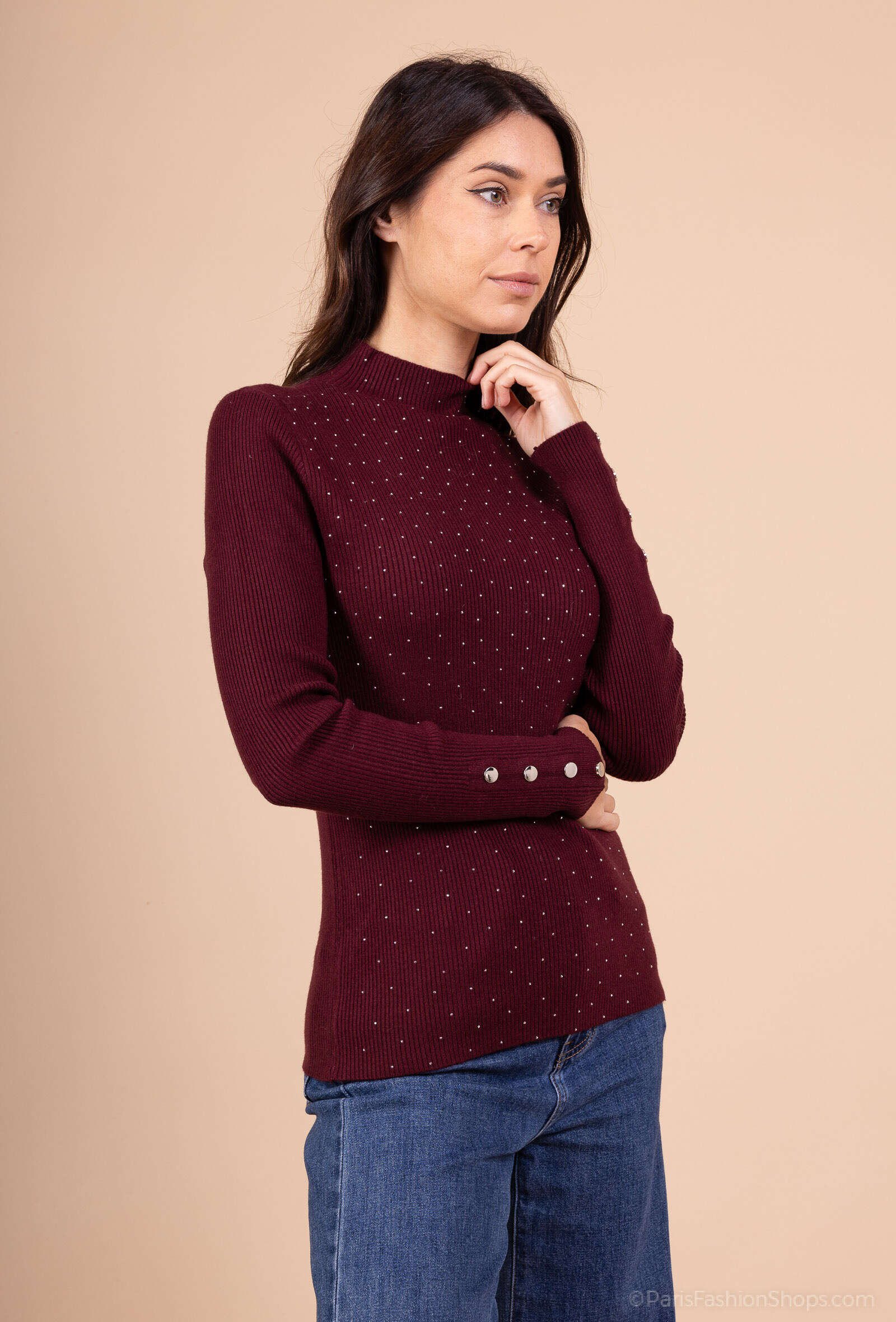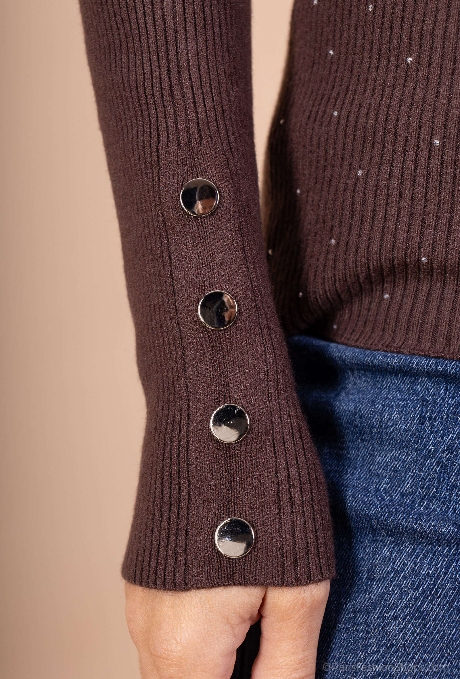 Bluzka OLENA to propozycja dla kobiet ceniących klasyczny styl z nutą elegancji. Model dostępny w czterech modnych kolorach: czekoladowym, czarnym, bordo i beżowym, dzięki czemu łatwo dopasować go do każdej garderoby. Wykonana z wysokogatunkowego, przyjemnego w dotyku materiału, gwarantuje komfort noszenia przez cały dzień. Prążkowana struktura doskonale układa się na sylwetce, a delikatne subtelne perełki dodają całości wyjątkowego uroku. Idealna zarówno do stylizacji biurowych, jak i na spotkania czy wieczorne wyjścia. W ofercie hurtowej dostępne różne rozmiary, co czyni ją świetnym wyborem do szerokiej sprzedaży detalicznej.