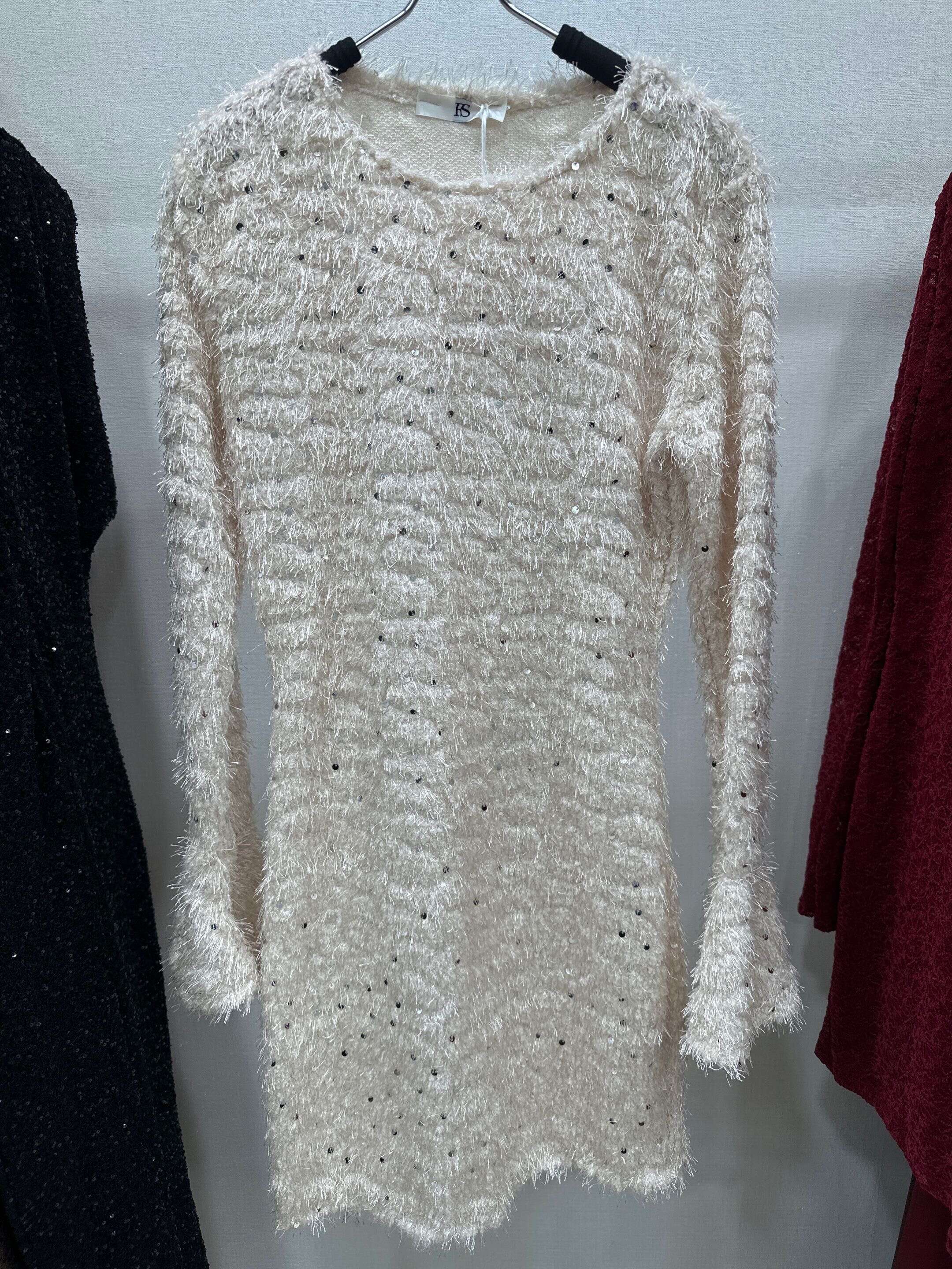 Wyjątkowo miękka sukienka z delikatnym włoskiem i połyskującymi aplikacjami. Nowoczesny krój zapewnia komfort i podkreśla sylwetkę.