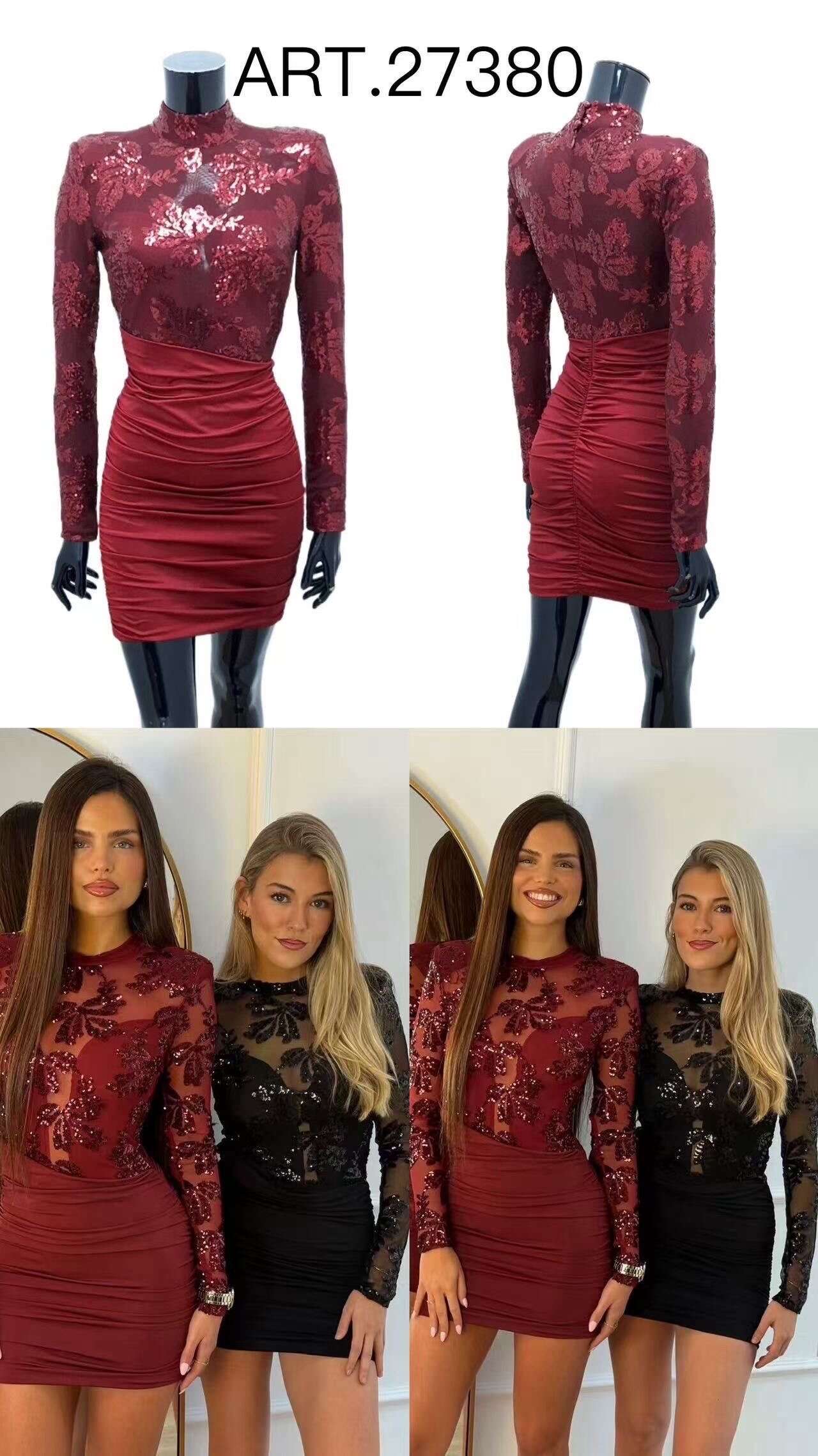 Sukienka ORTA to propozycja dla klientek ceniących wyjątkowy styl i nowoczesną elegancję. Model wykonany z elastycznego materiału gwarantuje idealne dopasowanie do sylwetki, a delikatna transparentna góra dekorowana cekinami dodaje całości szyku i oryginalności. Sukienka doskonale sprawdzi się podczas imprez, wieczornych wyjść czy wyjątkowych wydarzeń. W ofercie dostępne są dwa uniwersalne kolory: czekoladowy i klasyczny czarny, co pozwala stworzyć swój idealny asortyment. To produkt, który wyróżni każdą kolekcję i zachwyci najbardziej wymagających klientów hurtowych.