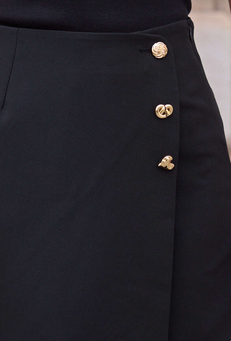 Szorty o klasycznym kroju z eleganckimi guzikami, uszyte z wygodnego materiału idealnego na co dzień i na specjalne okazje.