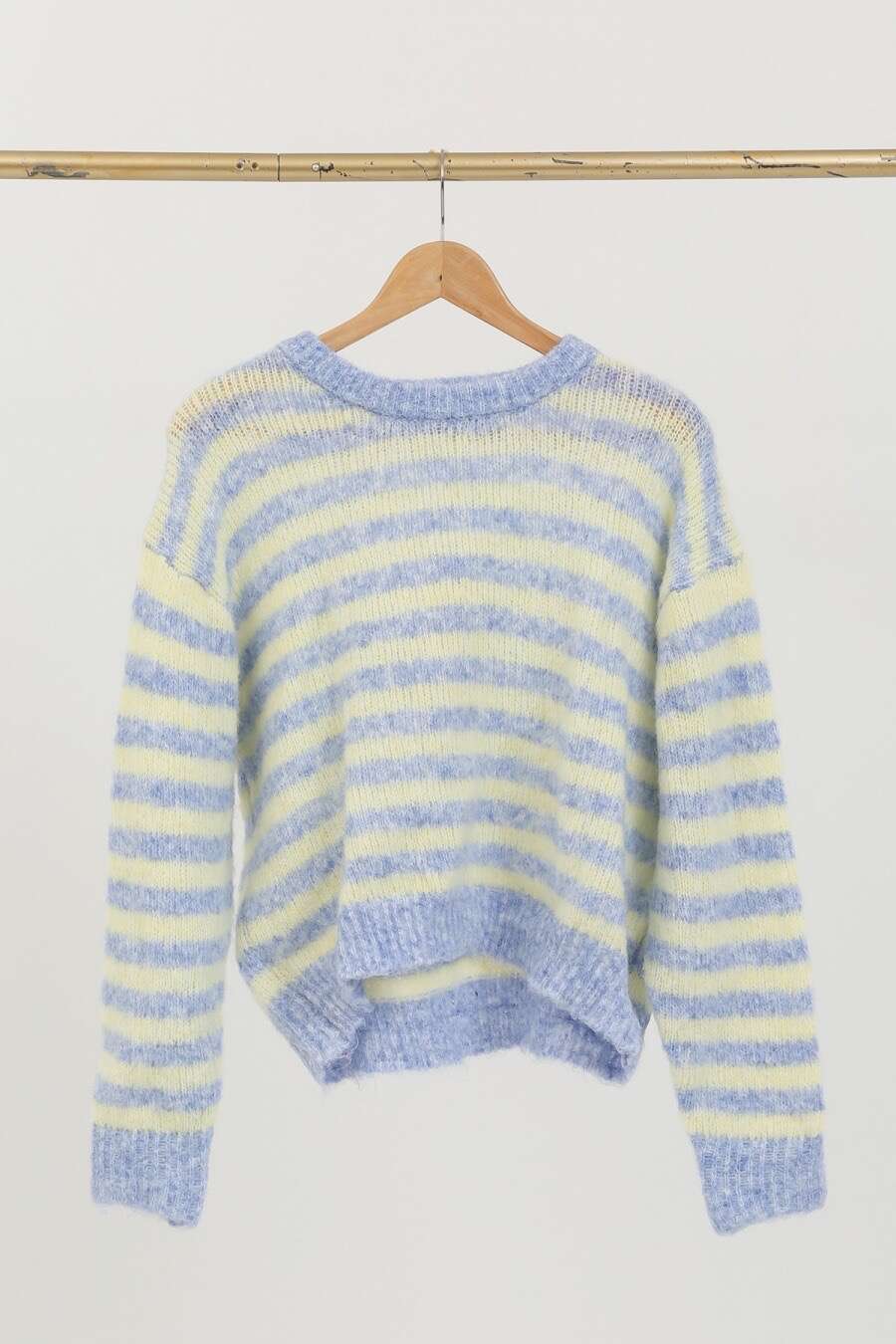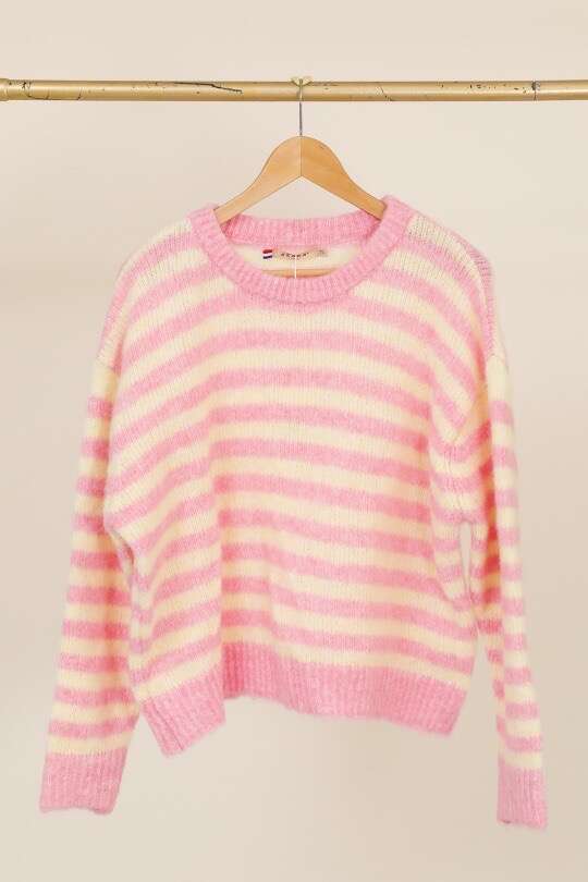 Oversize’owy krój, niezwykle miękki materiał, modne pastelowe paski, gwarancja komfortu i stylu.