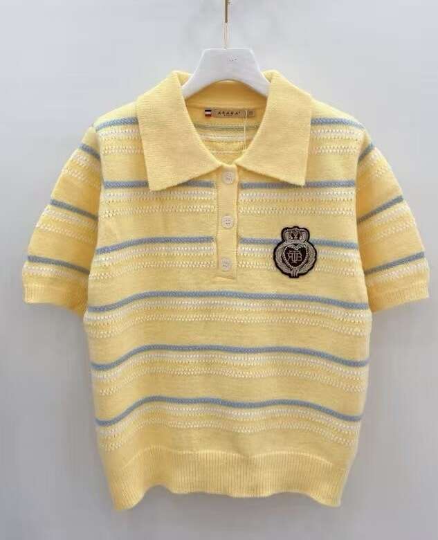 Oferujemy bluzkę z krótkim rękawem, wykonaną z wysokiej jakości, miękkiego materiału zapewniającego komfort noszenia przez cały dzień. Klasyczny kołnierzyk i ozdobna aplikacja nadają jej elegancki, lekko sportowy charakter. Ten model dostępny jest w trzech modnych kolorach: żółtym, błękitnym oraz beżowym, co pozwala na łatwe dopasowanie do każdej stylizacji. Idealna propozycja na wiosnę i lato zarówno do biura, jak i na casualowe wyjścia. Szeroki wybór rozmiarów gwarantuje, że każda kobieta znajdzie idealną opcję dla siebie. Zachęcamy do zakupu hurtowego — ta bluzka z pewnością będzie hitem w każdym sklepie!