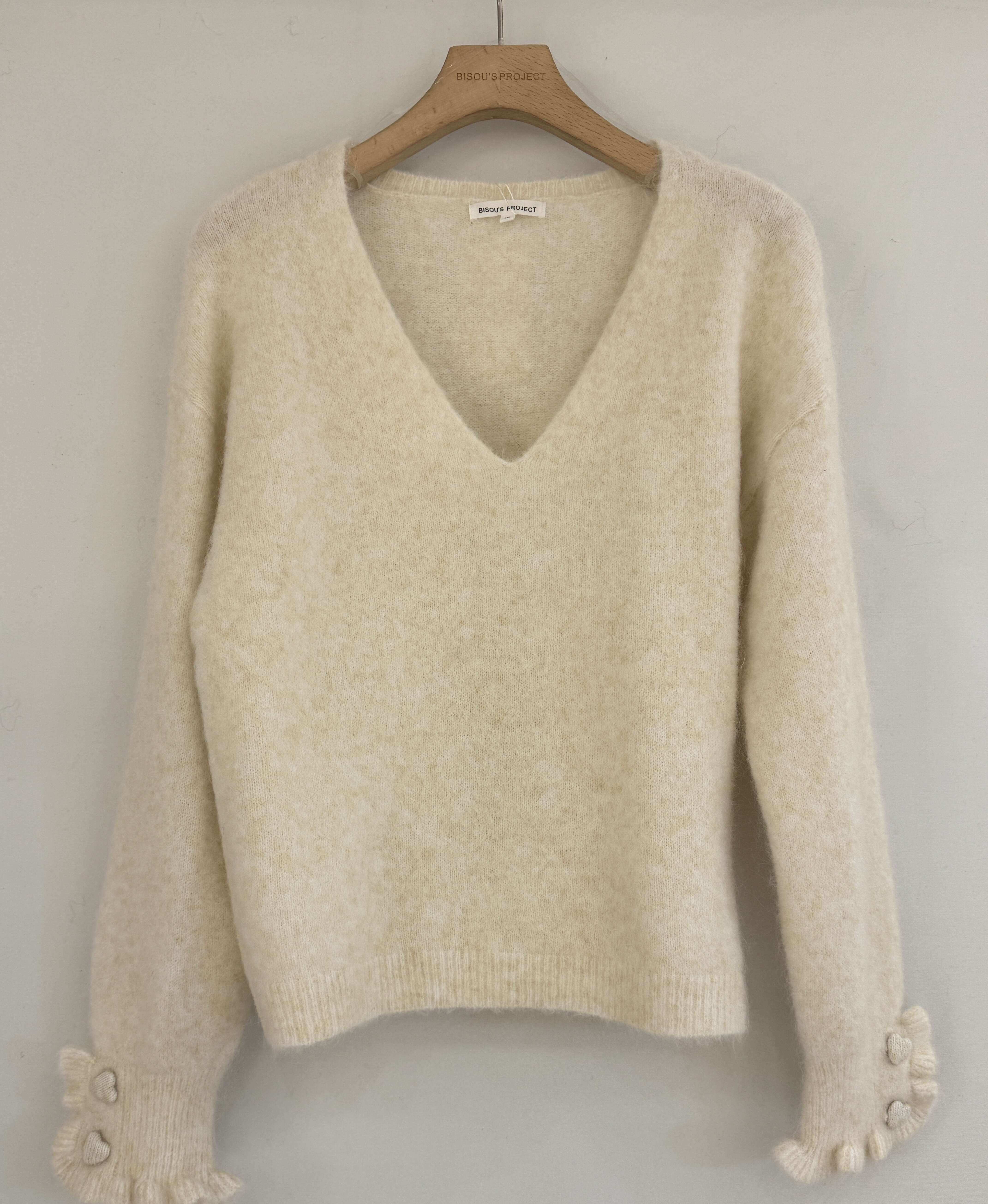 Miękki sweter o swobodnym kroju z dekoltem w serek, zapewniający wygodę i kobiecy styl. Idealny na każdą porę roku.