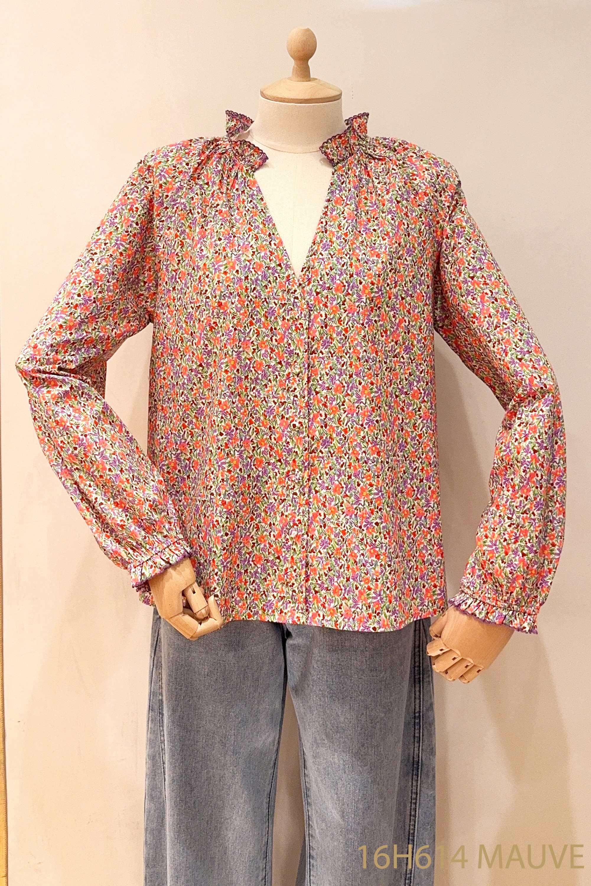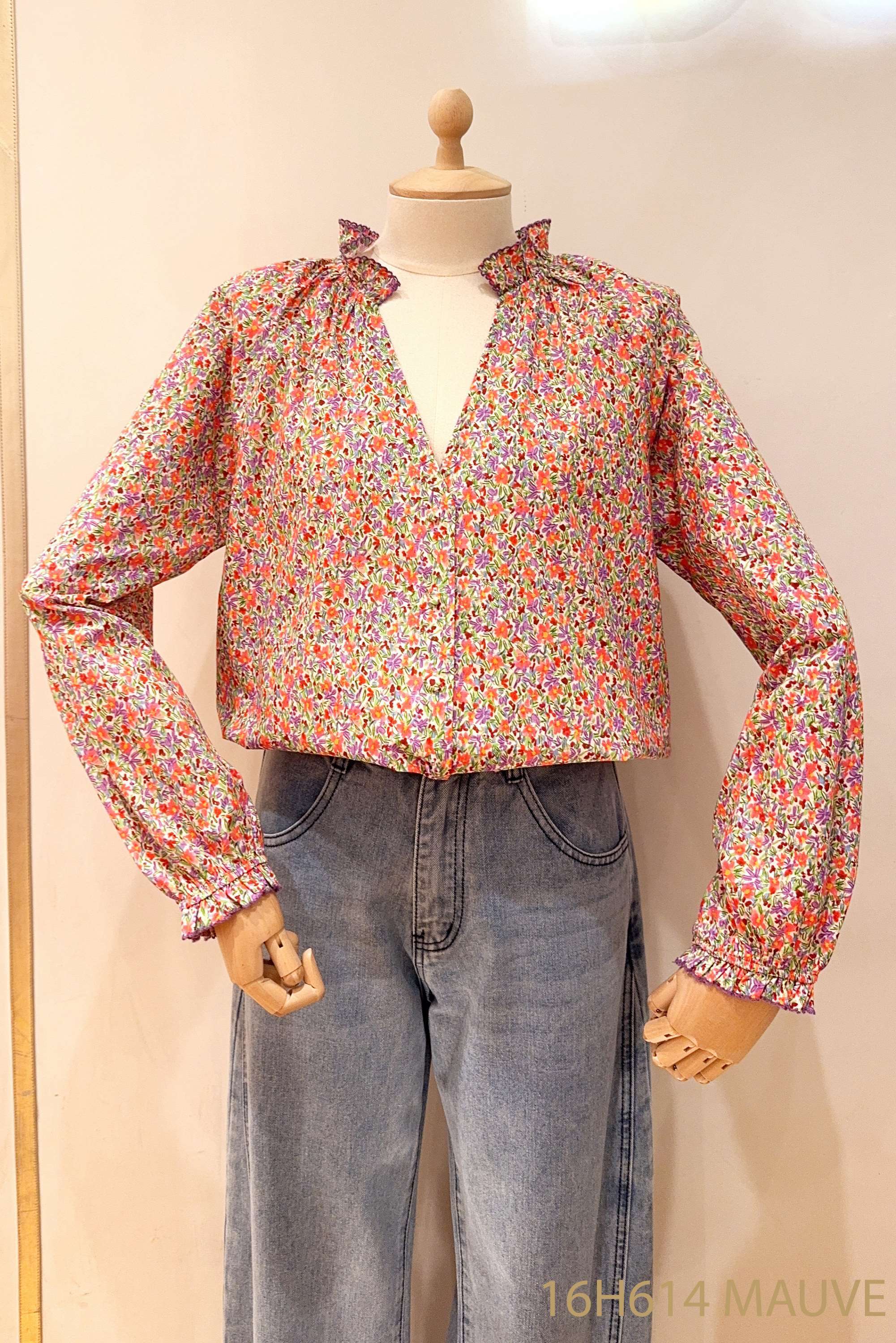 Lekka koszula o luźnym kroju, z delikatnym, kwiatowym printem i falbanką przy dekolcie – idealna na co dzień i do pracy.