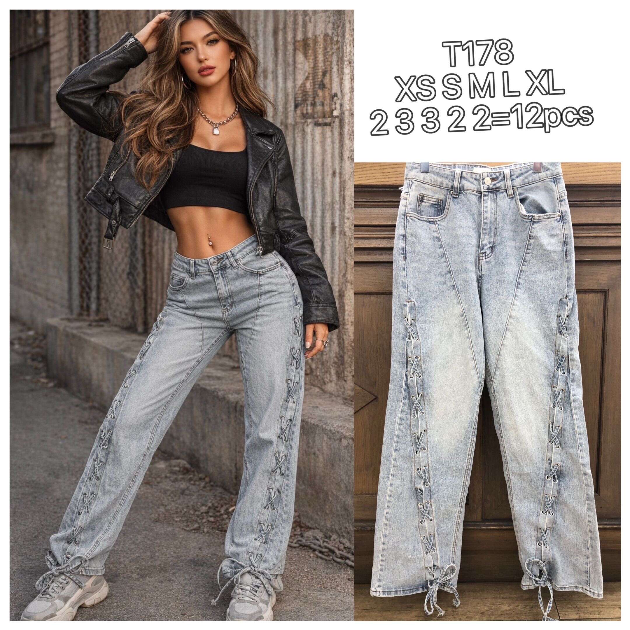 Modny jeansowy fason z efektownym wiązaniem po bokach – wygoda i oryginalny styl w jednym!