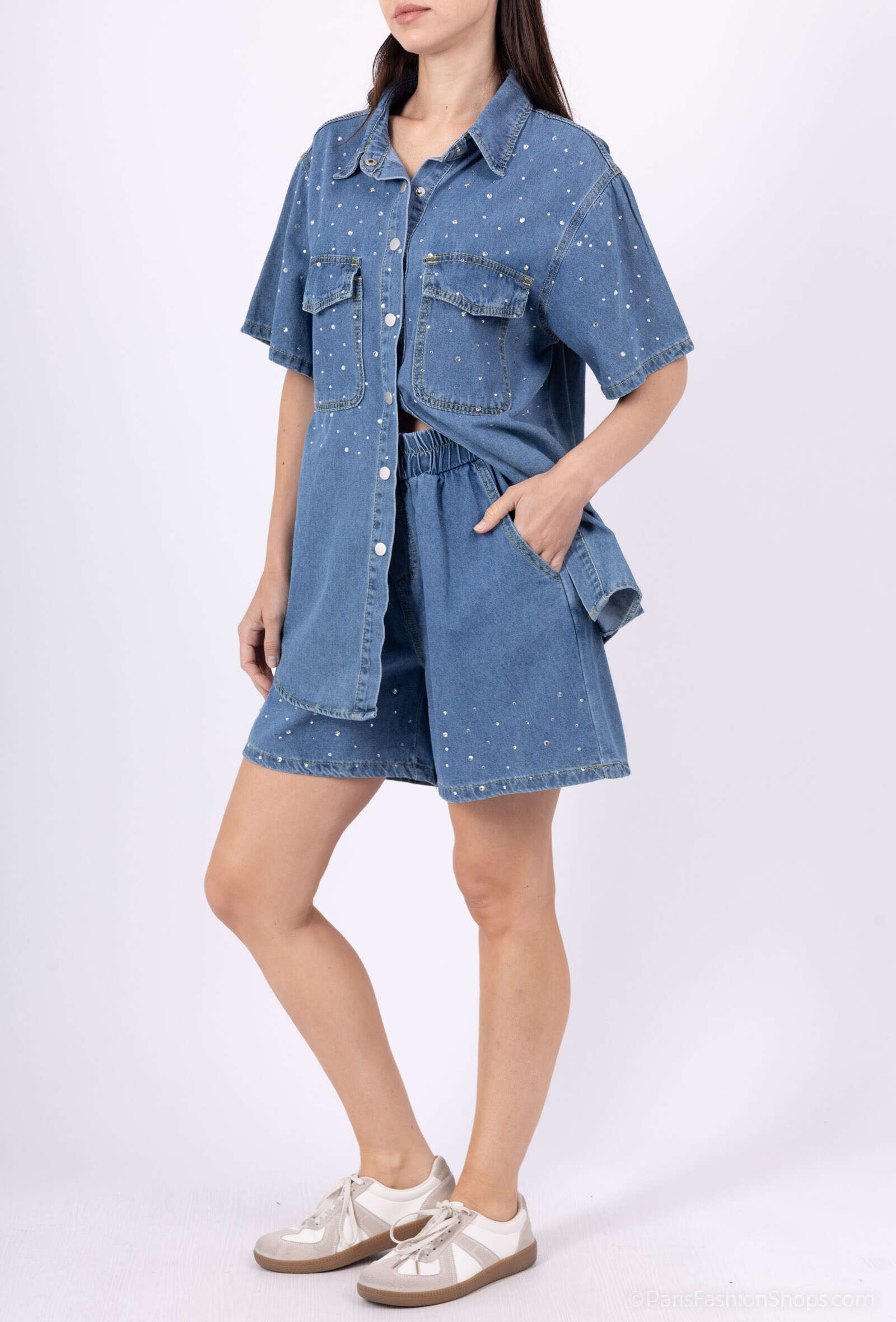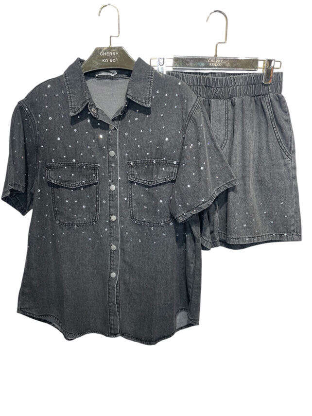 Postaw na praktyczność i styl, wybierając nasz denimowy komplet. Komplet składa się z koszuli o luźnym kroju oraz szortów z wygodną, elastyczną talią. Wysokiej jakości materiał zapewnia komfort noszenia przez cały dzień, a modny jeansowy look sprawdzi się w każdej miejskiej stylizacji. Dostępny w trzech unikatowych kolorach: jasny jeans, czarny oraz ciemny jeans — idealny wybór na lato, wakacje lub casualowe wyjścia. Produkt dostępny w szerokiej gamie rozmiarów, co pozwoli dopasować asortyment do różnorodnych potrzeb Twoich klientów. Postaw na bestseller wśród kompletów na nowy sezon!
