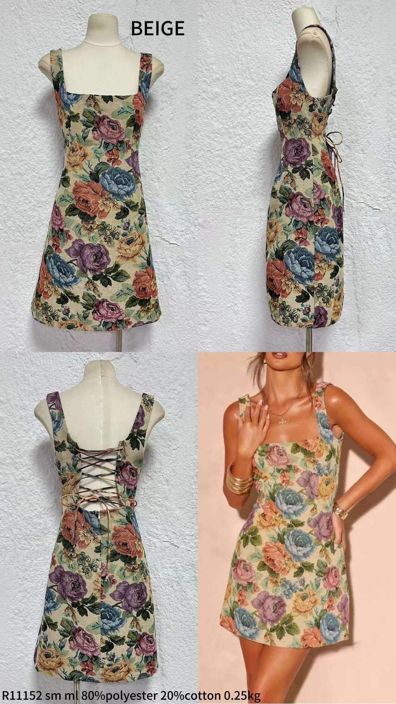 Dopasowany fason, komfortowy materiał i beżowa baza z efektownym kwiatowym wzorem – idealna na letnie wyjścia.