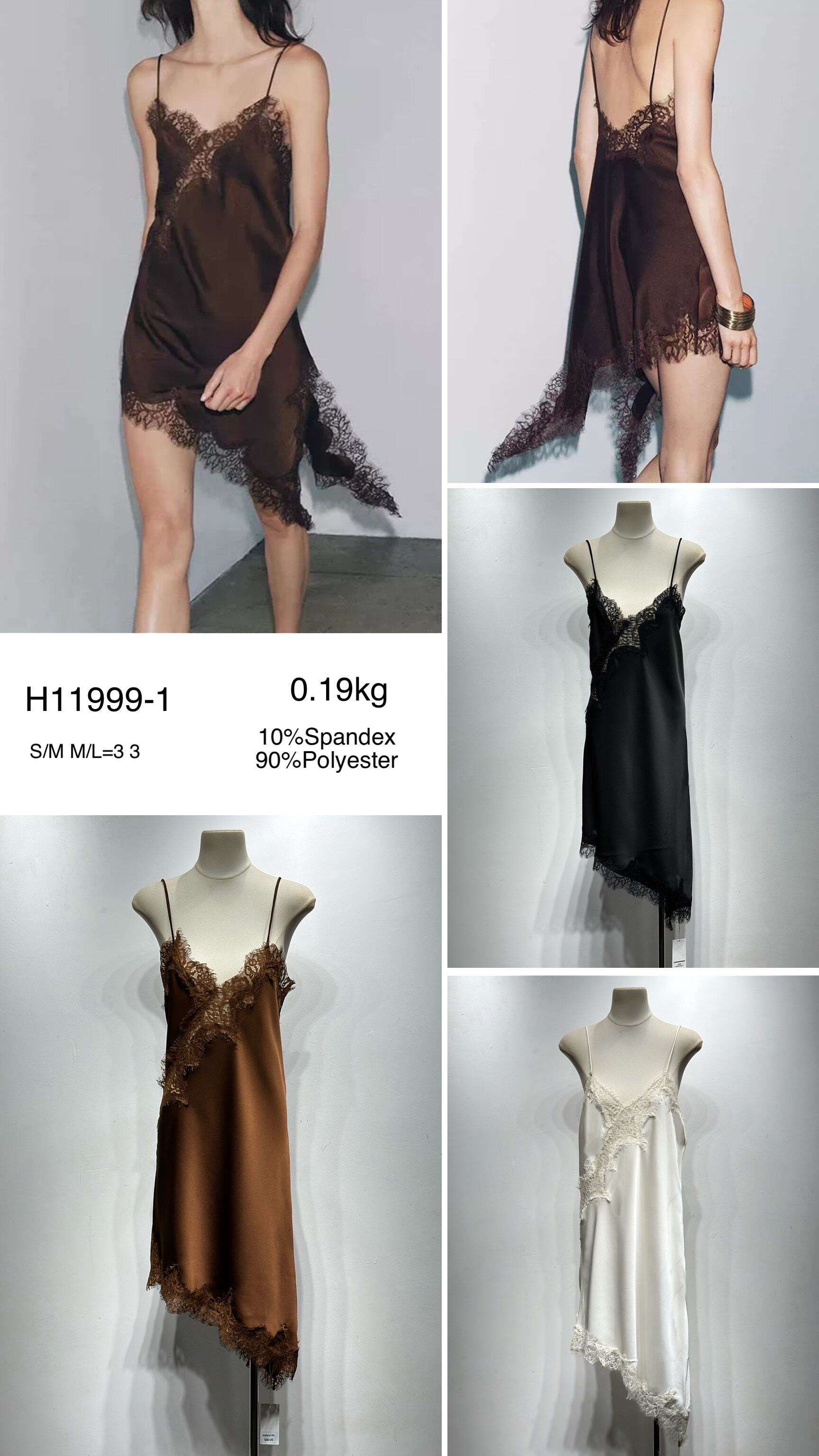 Zmysłowa mini na ramiączkach, z delikatnej satyny i koronką, lekko asymetryczny krój.