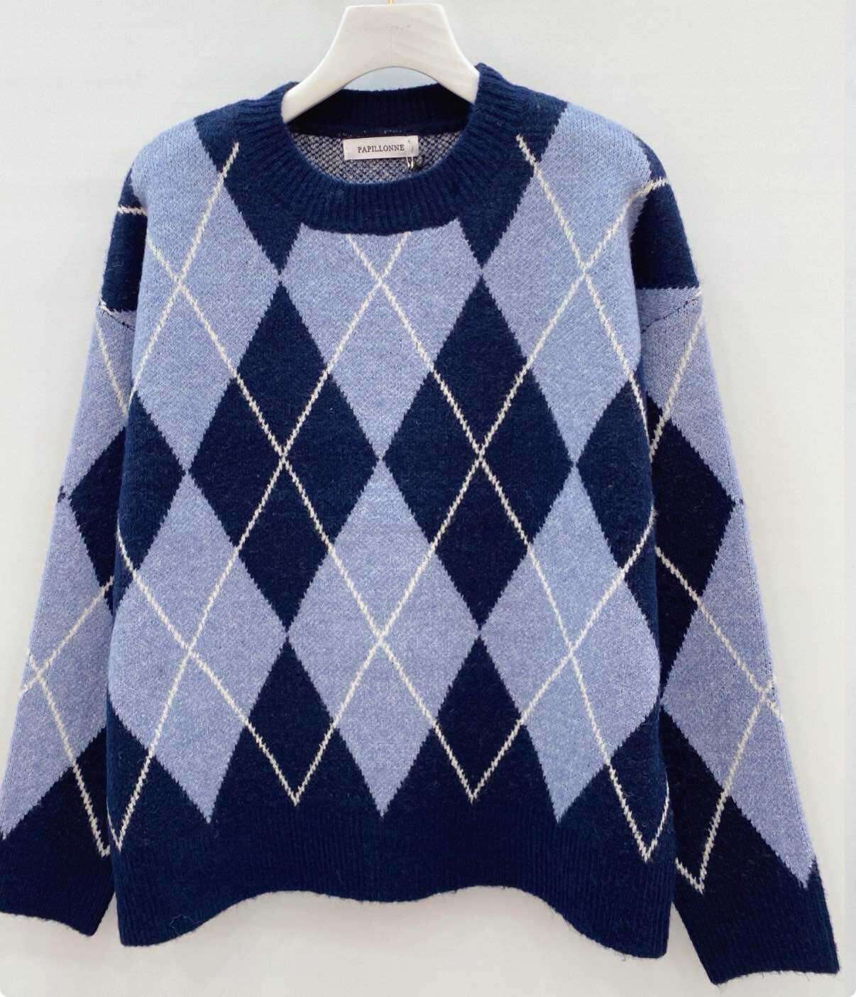 Klasyczny, ciepły sweter w modny diamentowy wzór. Wygodny krój i ponadczasowy styl – idealny na chłodniejsze dni.
