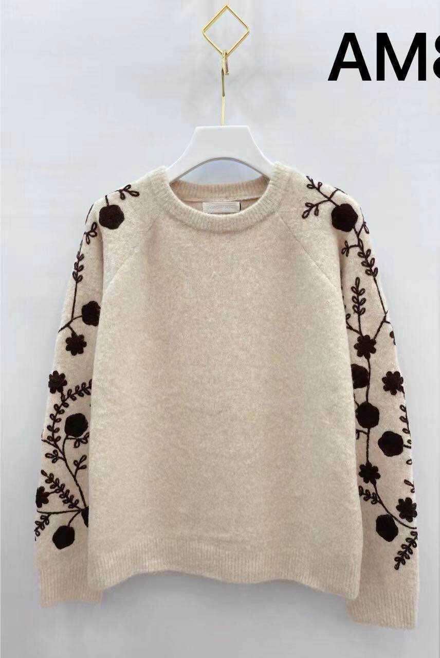 Sweter o klasycznym kroju z wyjątkowym kwiatowym haftem na rękawach. Wygodny, miękki i stylowy wybór na co dzień.