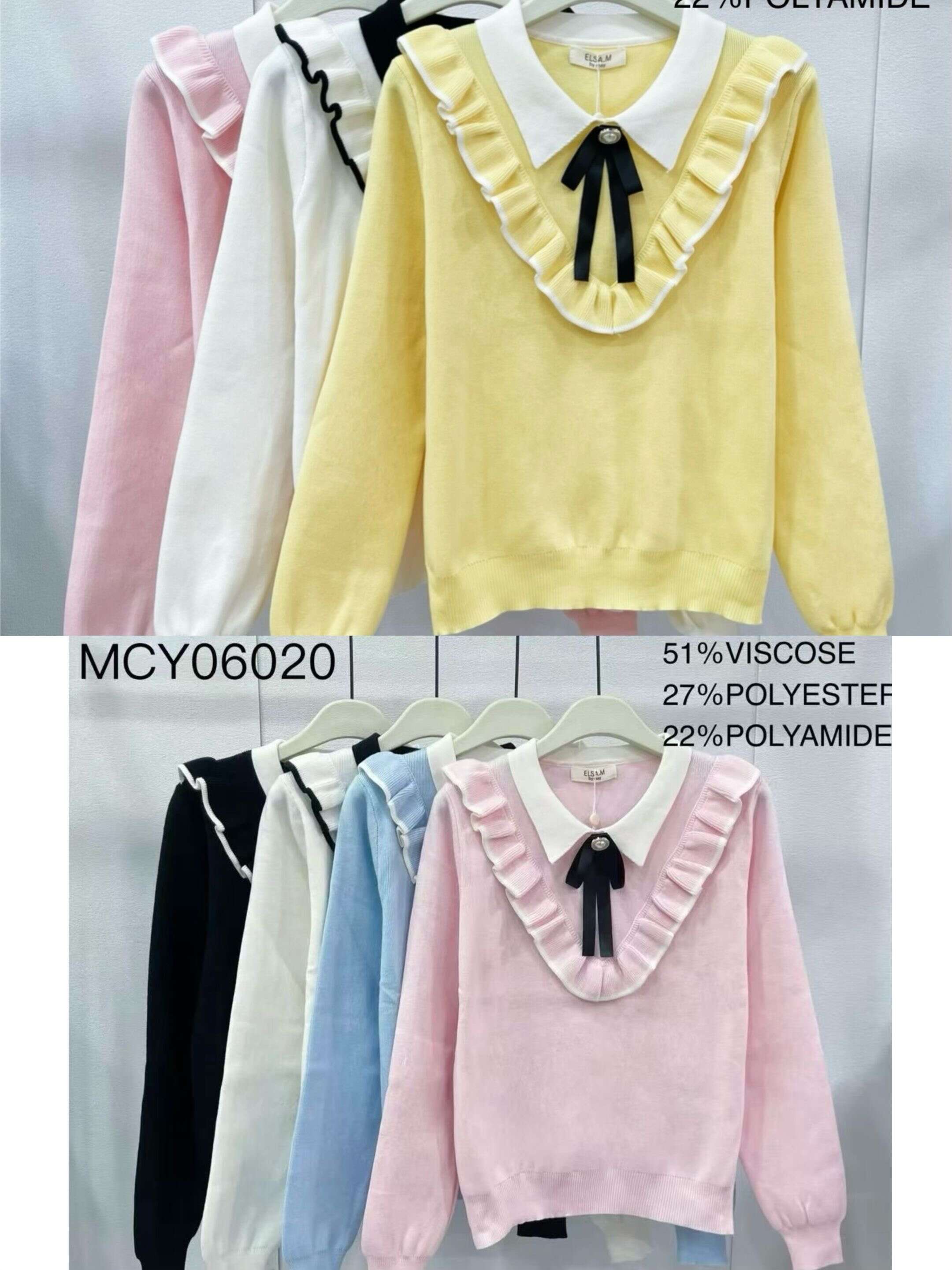 Nowoczesna, a przy tym niezwykle kobieca bluzka dostępna w czterech modnych kolorach: różowym, czarnym, błękitnym oraz białym. Model wyróżnia się klasycznym kołnierzem z biżuteryjnym guzikiem oraz delikatną falbanką, która podkreśla wyrafinowany charakter stroju. Doskonały wybór na spotkania biznesowe, do codziennych stylizacji, jak i wyjątkowe okazje. Wysokiej jakości, przyjemny w dotyku materiał gwarantuje wygodę przez cały dzień. Szeroka gama rozmiarów pozwoli idealnie dopasować produkt do Twojej kolekcji. Zamów bluzki hurtowo i zapewnij swoim klientkom nowoczesny look z nutą klasyki!
