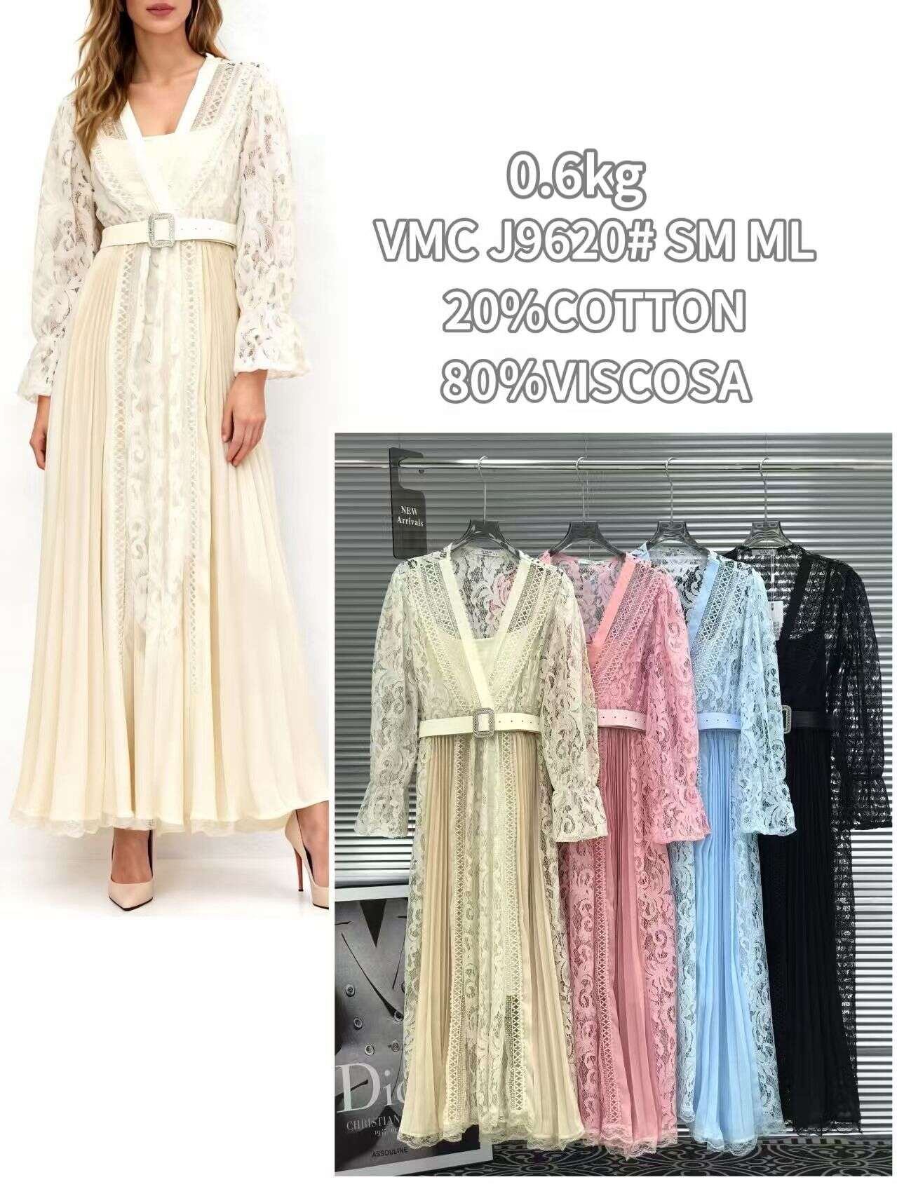 Sukienka GRACE to doskonały wybór dla hurtowni szukających efektownych i uniwersalnych modeli. Wyróżnia się kobiecym, lekko rozkloszowanym krojem do ziemi, który pięknie układa się podczas ruchu. Sukienka dostępna jest w aż czterech modnych kolorach: różowym, czarnym, błękitnym oraz beżowym, co pozwala dopasować ofertę do różnych gustów klientek. Materiał to połączenie 80% wiskozy i 20% bawełny, gwarantujące przewiewność, lekkość i wygodę użytkowania. Delikatna koronka, elegancki pasek podkreślający talię oraz staranne wykończenie sprawiają, że sukienka doskonale sprawdzi się zarówno na uroczystości rodzinne, wesela, jak i letnie wyjścia. Dostępne rozmiary SM oraz ML zapewniają idealne dopasowanie dla różnych sylwetek.