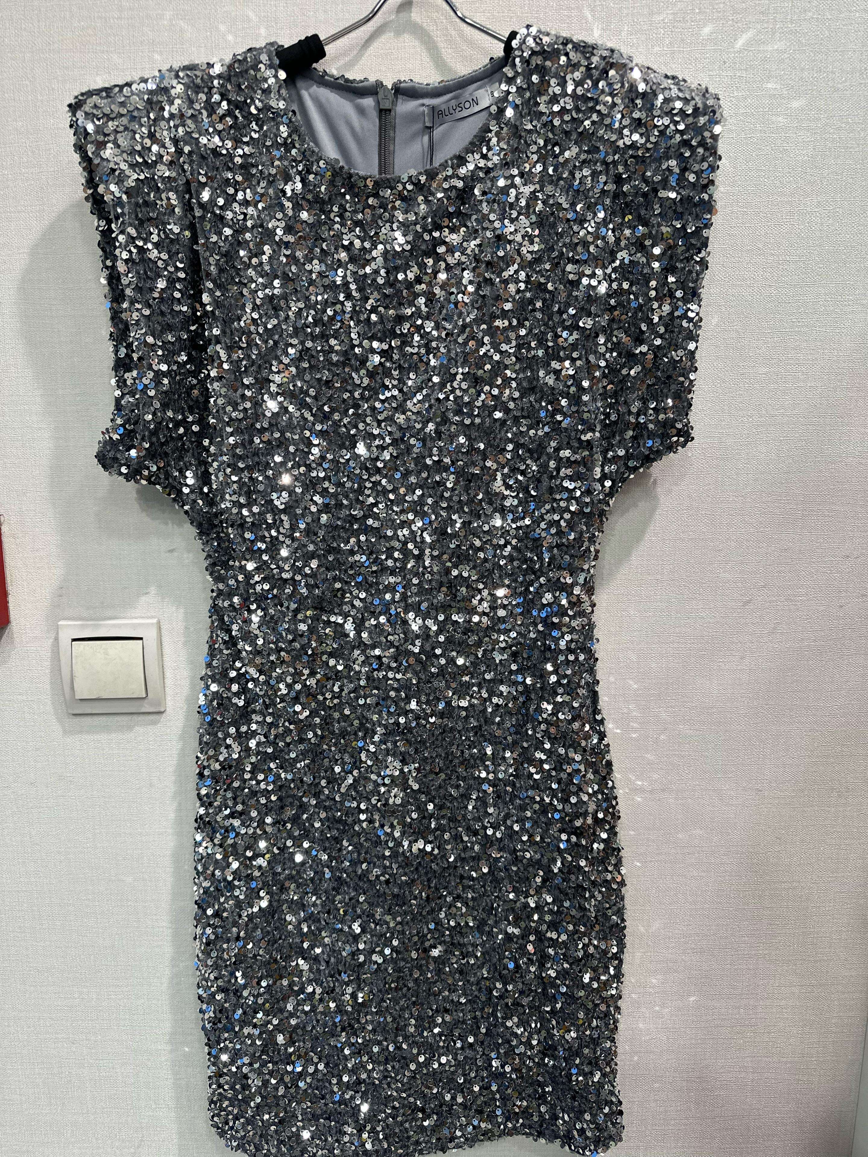 Efektowna sukienka z bogato zdobionymi cekinami, prosta forma, wygodny krój i zjawiskowy połysk na wyjątkowe okazje.
