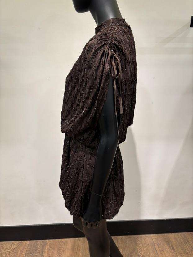 Odkryj niepowtarzalna sukienkę dostępną w modnych kolorach: czekoladowym i czarnym. Wyjątkowa, lekko bufująca góra oraz swobodny dół podkreślają sylwetkę i zapewniają komfort nawet podczas długich godzin noszenia. Efektowne wykończenie materiału dodaje stylizacji blasku, a elastyczna talia gwarantuje idealne dopasowanie dla różnych typów sylwetek. Kombinezon świetnie sprawdzi się zarówno na eleganckie przyjęcia, jak i wieczorne wyjścia. Dostępny w szerokiej gamie rozmiarów. Wybierz jakość, która doda Twojej ofercie wyjątkowego charakteru!