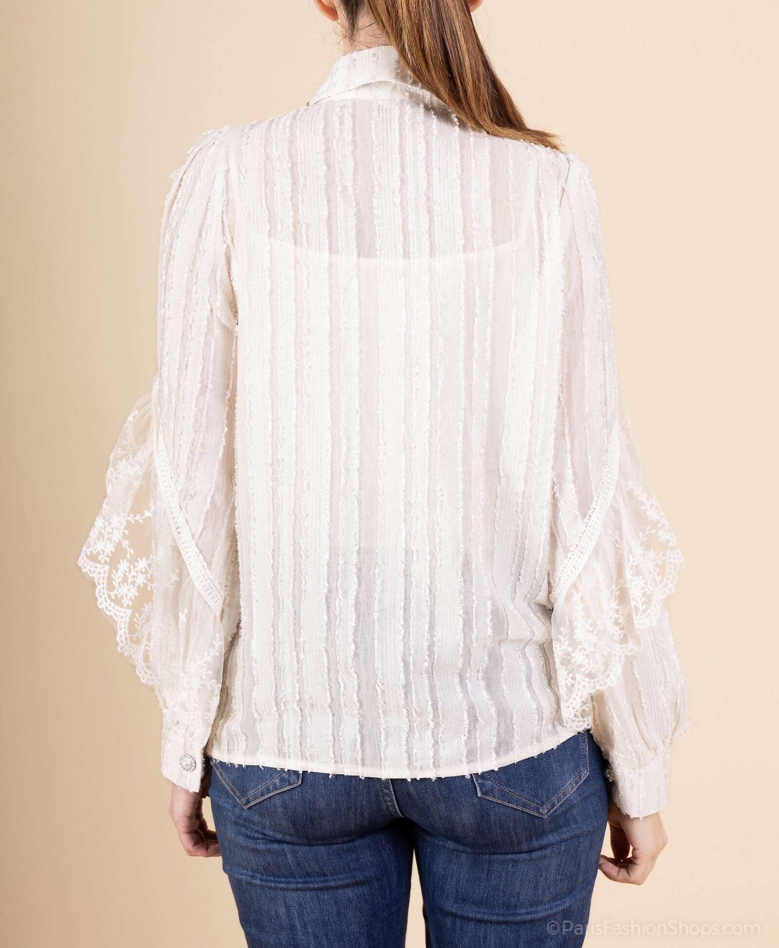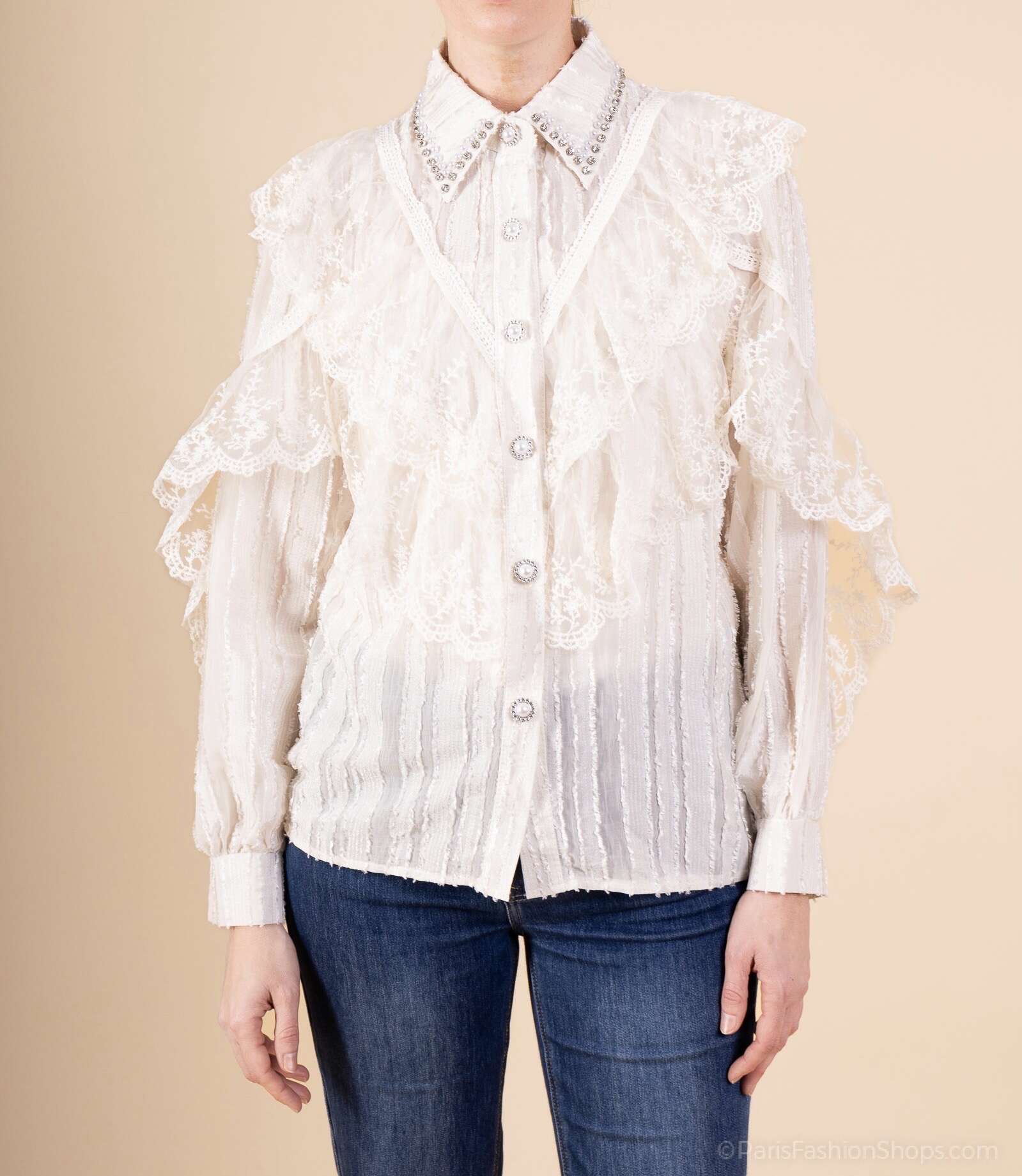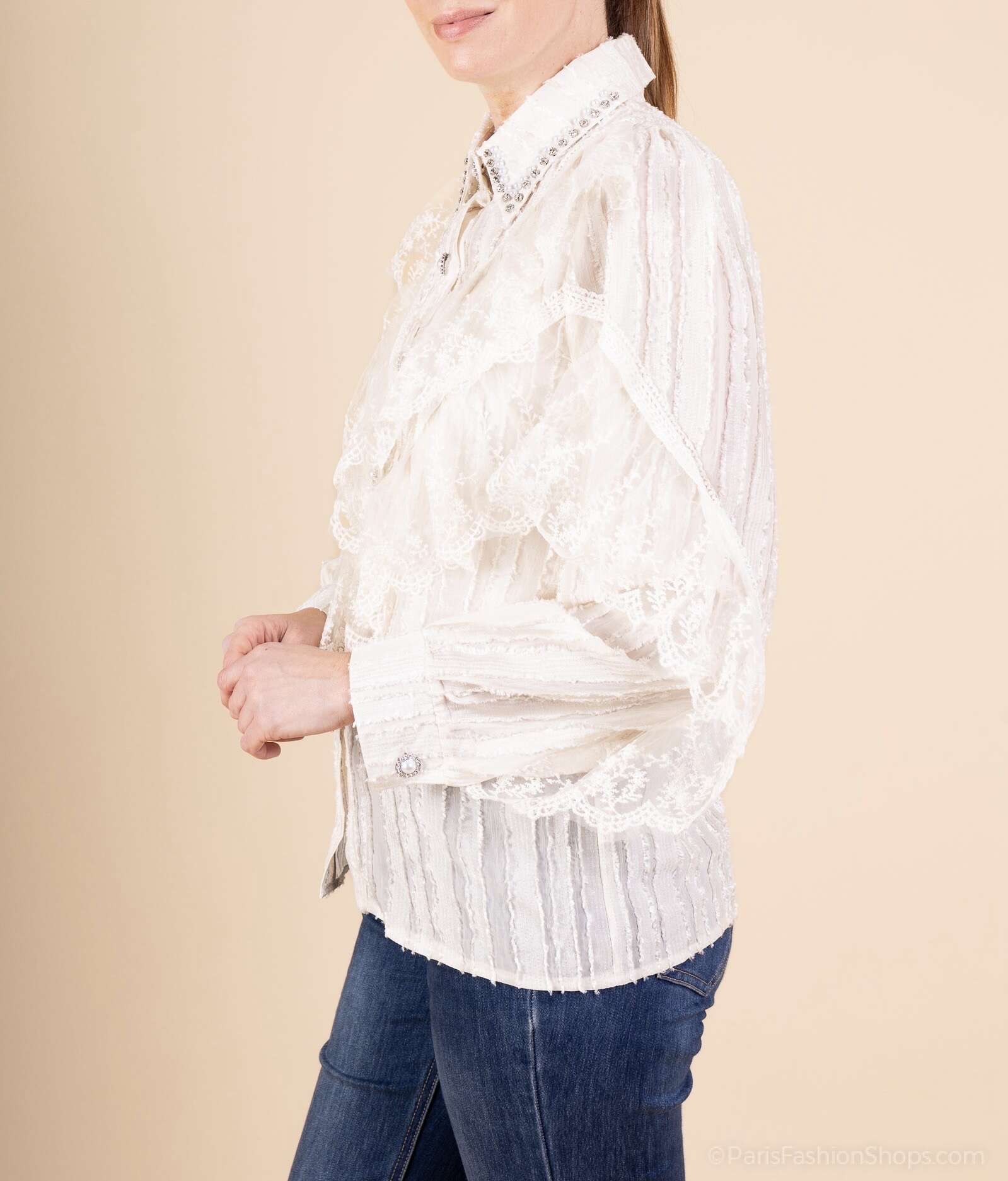 Delikatna koszula z koronkowymi detalami, ozdobnym kołnierzykiem i efektownymi guzikami. Zjawiskowy fason, który łączy wygodę z kobiecym stylem.