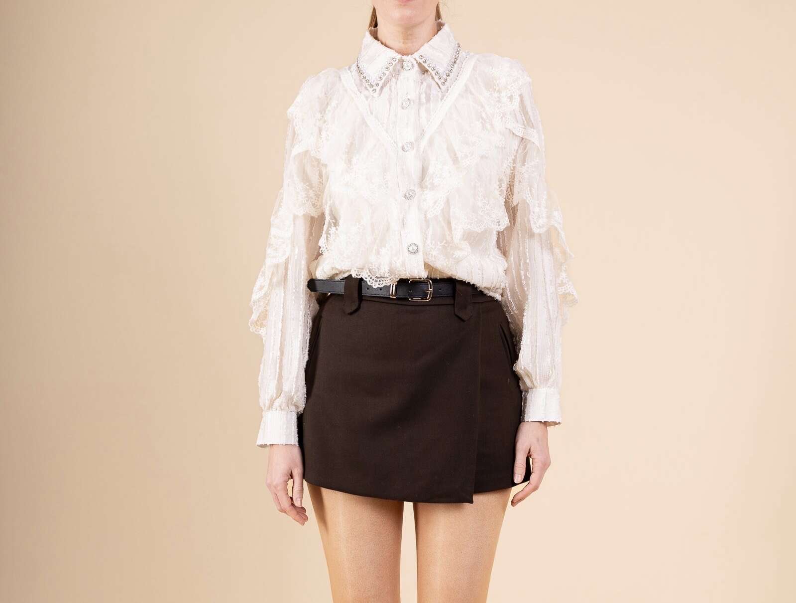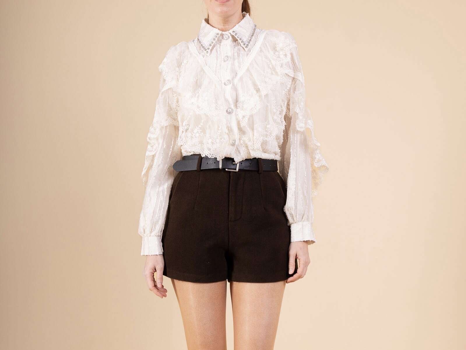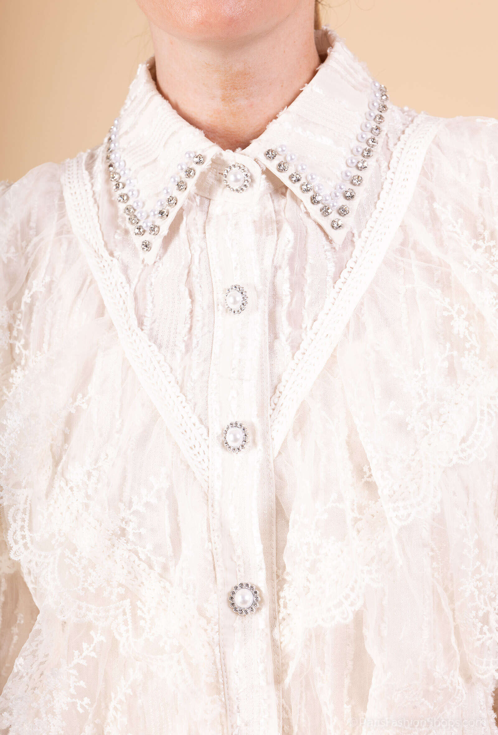 Delikatna koszula z koronkowymi detalami, ozdobnym kołnierzykiem i efektownymi guzikami. Zjawiskowy fason, który łączy wygodę z kobiecym stylem.