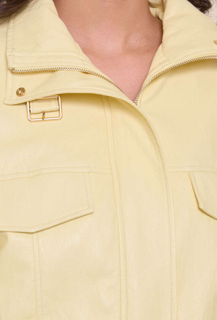 Modna kurtka o krótkim, lekko oversize’owym kroju z wysokiej jakości ekoskóry, zapinana na suwak i napy, z praktycznymi kieszeniami i stylowymi detalami.