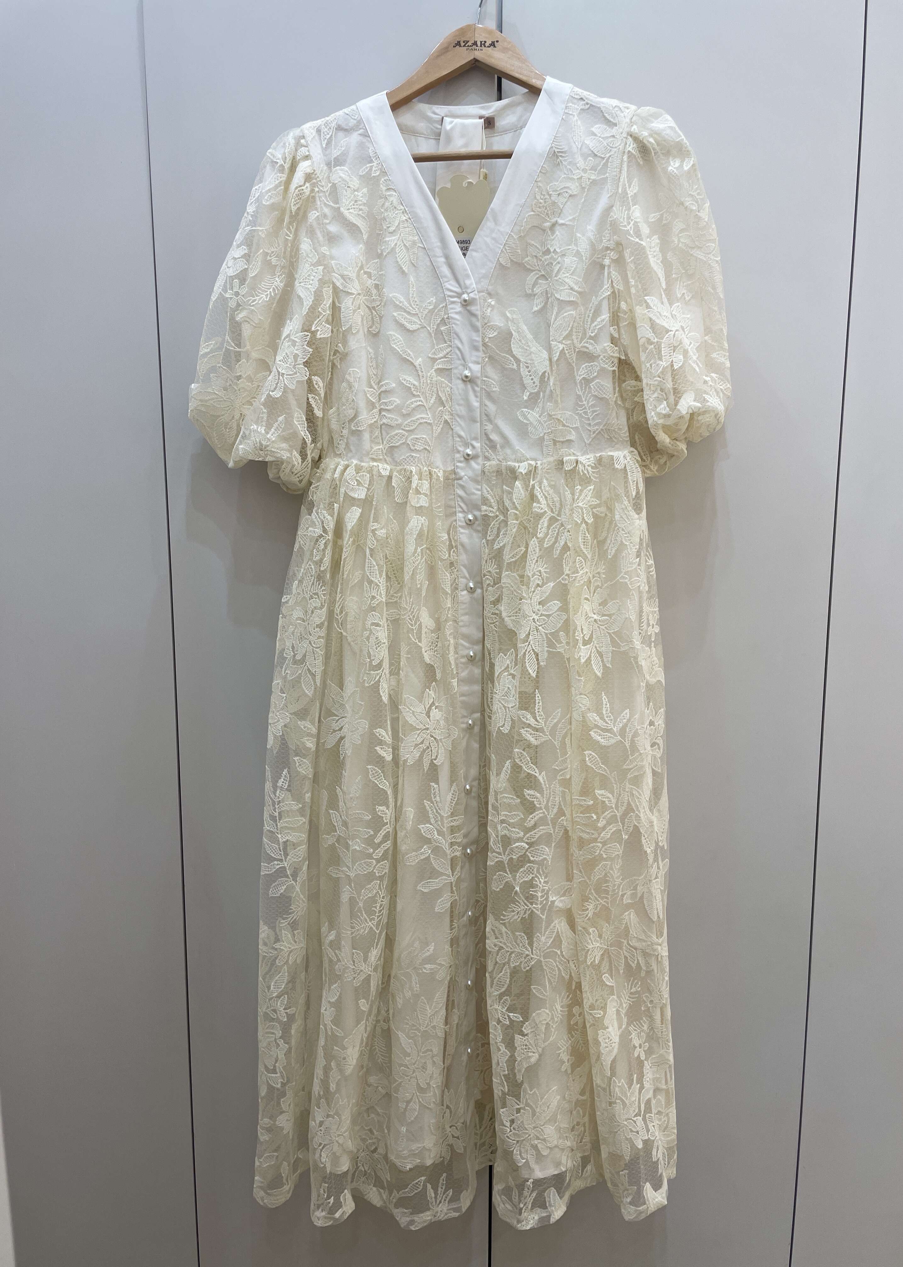 Subtelna sukienka z koronką, bufiastymi rękawami i szerokim paskiem podkreślającym talię. Lekkość, kobiecość i elegancja.