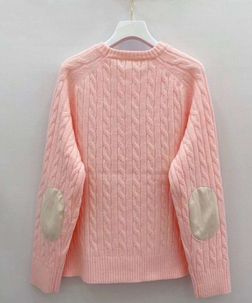 Klasyczny sweter damski o splocie warkoczowym z elegancką aplikacją, zapewniający komfort i ponadczasowy styl.