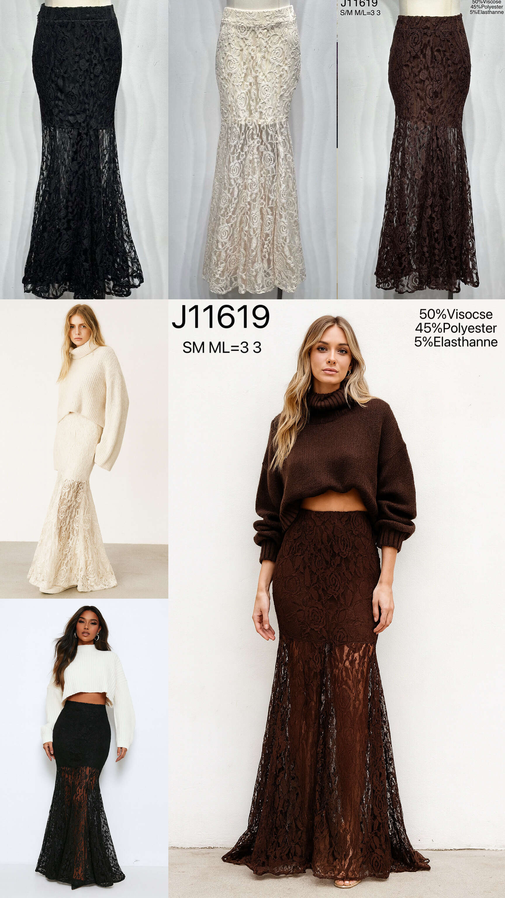 Spódnica PROSSECCO to połączenie zmysłowej elegancji i komfortu noszenia. Model wykonany został z wysokiej jakości koronki, podkreślającej kobiecą sylwetkę i nadającej stylizacjom niepowtarzalnego uroku. Dostępna w modnym kolorze czekoladowym i kilku rozmiarach, doskonale sprawdzi się zarówno w kolekcjach na specjalne okazje, imprezy, jak i codzienne wyjścia. Miękki materiał gwarantuje wygodę, a klasyczny krój z lekko rozkloszowanym dołem wpisuje się w aktualne trendy. Wyjątkowa propozycja dla butików i sklepów oferujących modne, kobiece stylizacje.