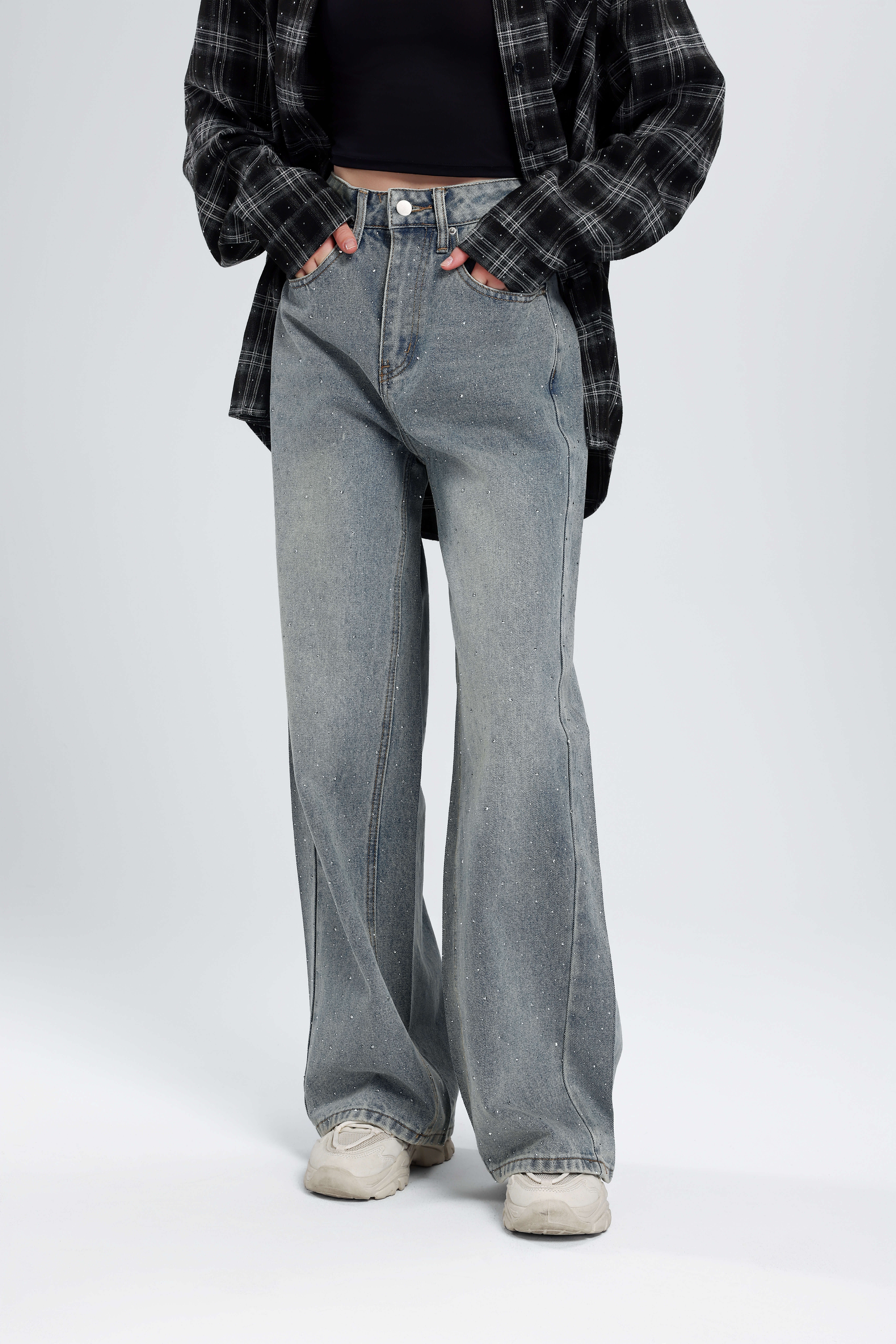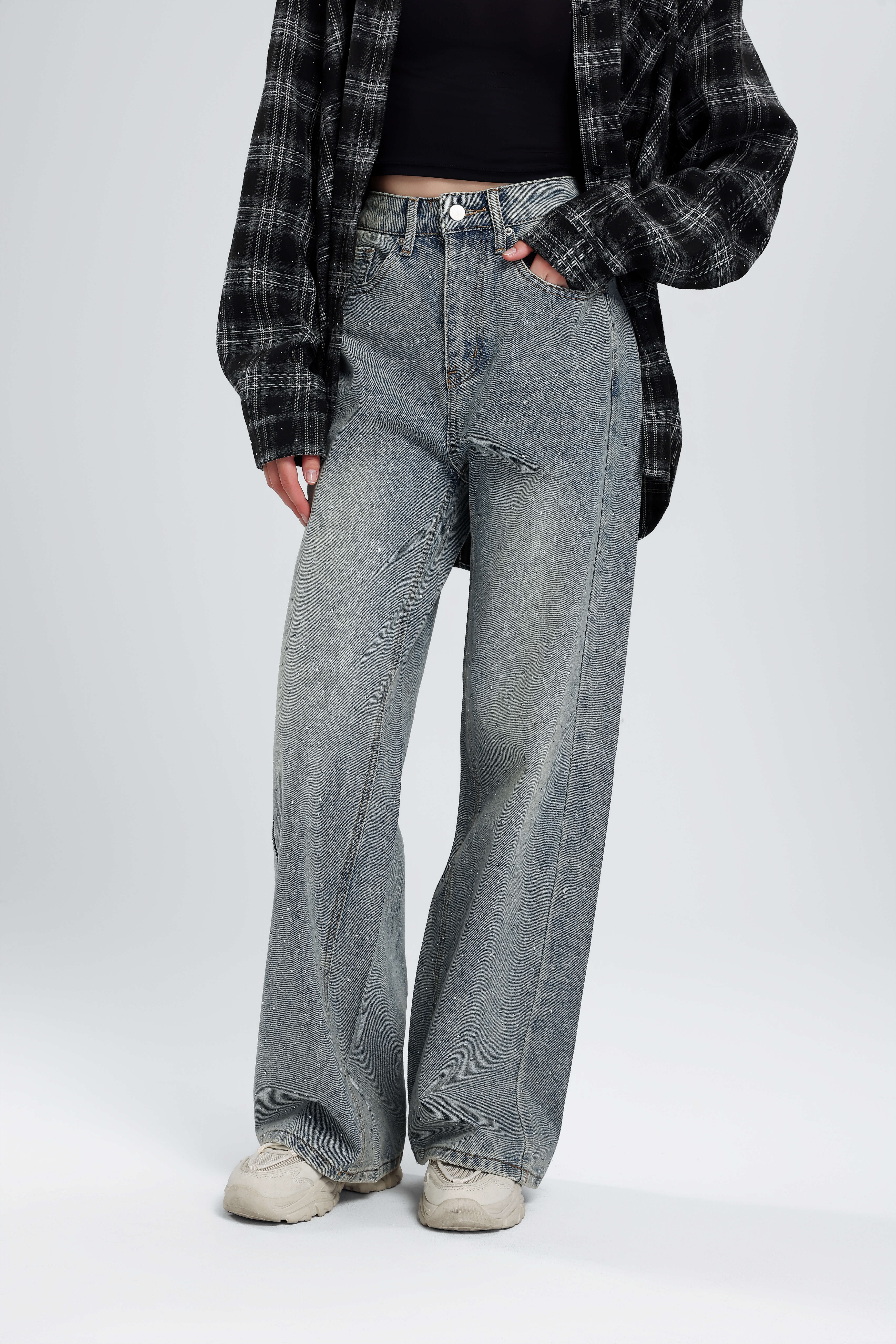Spodnie INFINITY DIAMOND to must-have w każdej hurtowni oferującej modę zgodną z najnowszymi trendami. Dostępne w ponadczasowym, jeansowym kolorze, wykonane z wysokiej jakości materiału, który gwarantuje komfort noszenia i wytrzymałość na długie sezony. Luźny, szeroki fason typu wide leg sprawdzi się zarówno w codziennych, jak i bardziej modowych stylizacjach. Idealne do casualowych zestawień z T-shirtem lub do bardziej odważnych looków z marynarką i sneakersami. Dostępność różnych rozmiarów sprawia, że każda klientka znajdzie idealny model dla siebie. Doskonały wybór do sprzedaży hurtowej – spodnie, których nie może zabraknąć w Twojej ofercie!