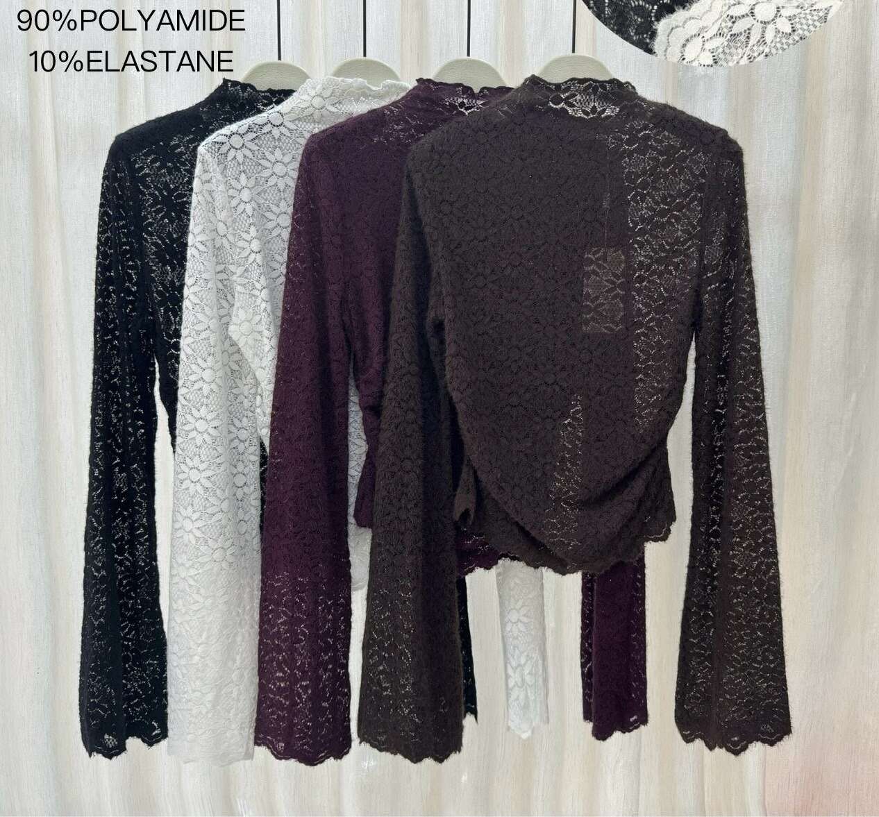 Koronkowa bluzka z długim rękawem, półgolfem i elastycznym krojem podkreślającym sylwetkę. Idealna na eleganckie wyjścia i codzienne stylizacje.