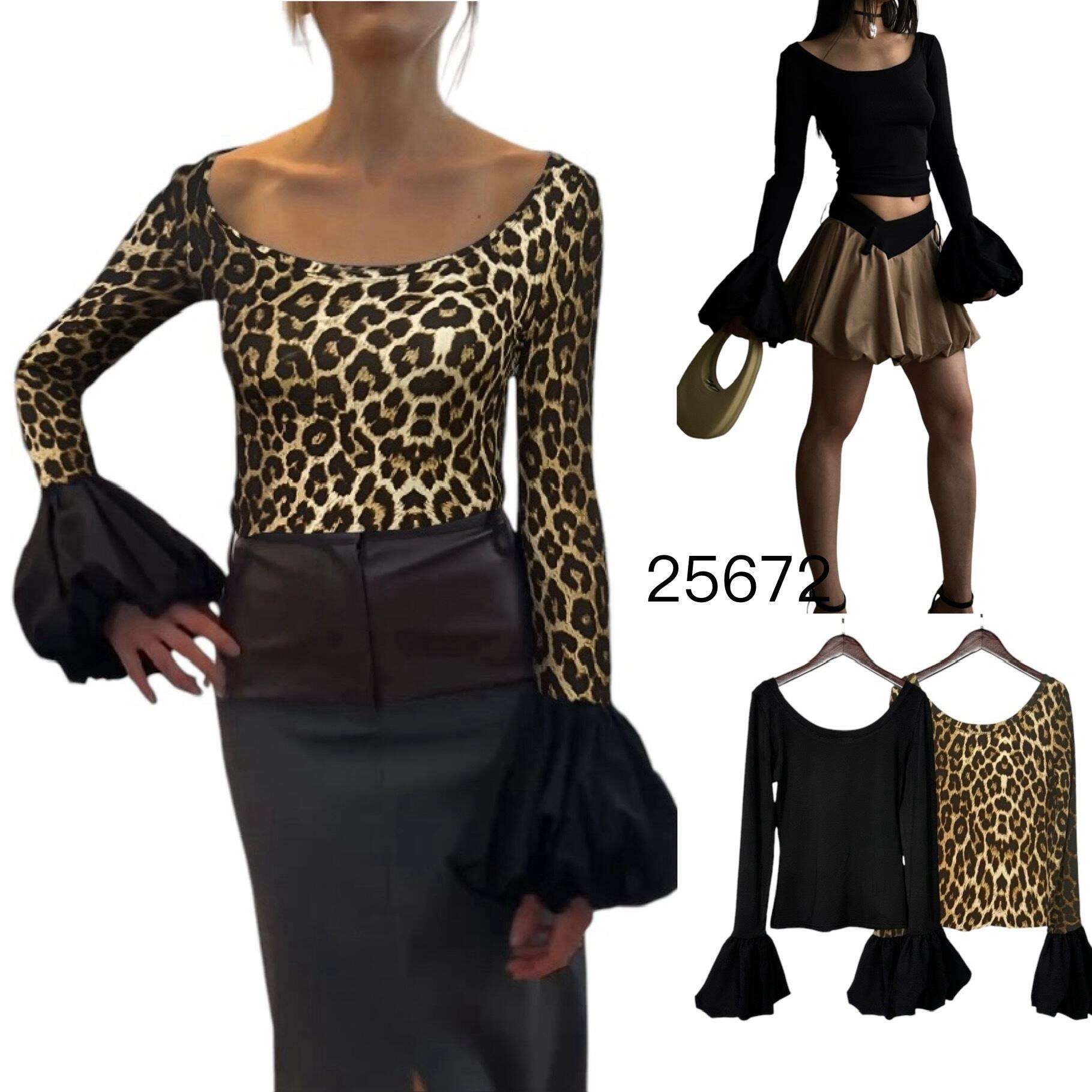 Bluzka BARBER to propozycja dla pewnych siebie kobiet, które chcą wyróżnić się w tłumie. Dostępna w klasycznym czarnym oraz modnym czekoladowym kolorze, doskonale sprawdzi się zarówno w eleganckich, jak i codziennych stylizacjach. Wysokiej jakości, elastyczny materiał gwarantuje komfort noszenia przez cały dzień, a unikalne, szerokie rękawy z falbanami przyciągają wzrok i podkreślają modny charakter produktu. Model świetnie prezentuje się w połączeniu z jeansami, spódnicami czy spodniami z wysokim stanem. Różnorodność rozmiarów sprawia, że bluzka dopasuje się do każdej sylwetki. Doskonały wybór do hurtowej sprzedaży – must-have w kolekcji Twojego sklepu na sezon 2024!