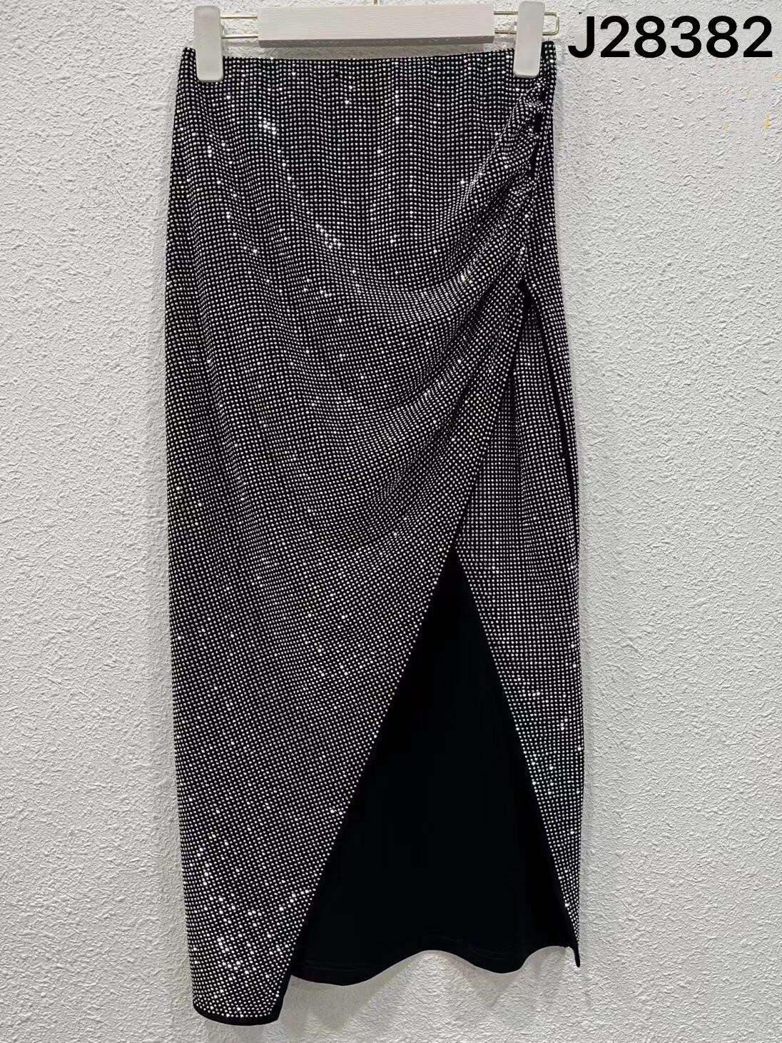 Elegancka spódnica z połyskującymi drobinkami, dopasowany krój i efektowne rozcięcie podkreślają sylwetkę oraz styl wieczorowy.
