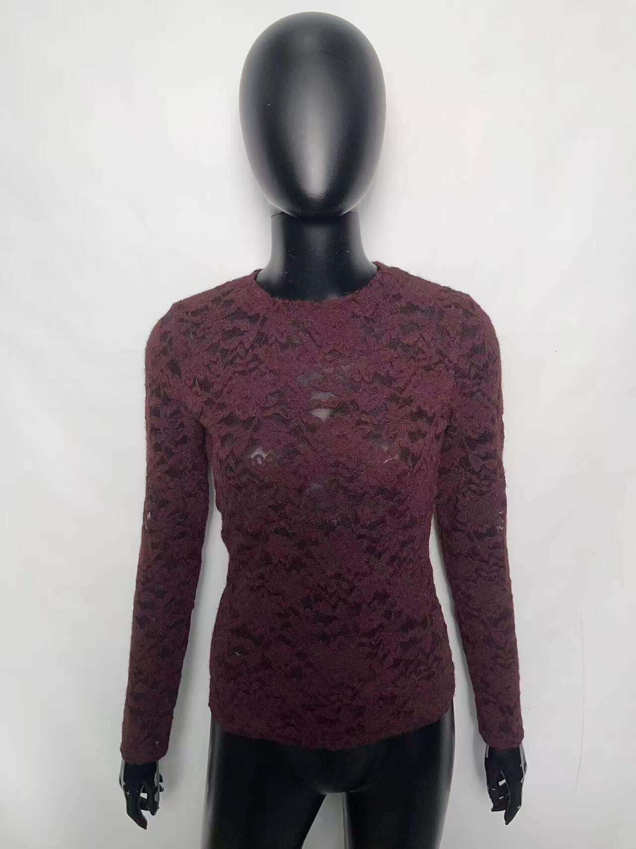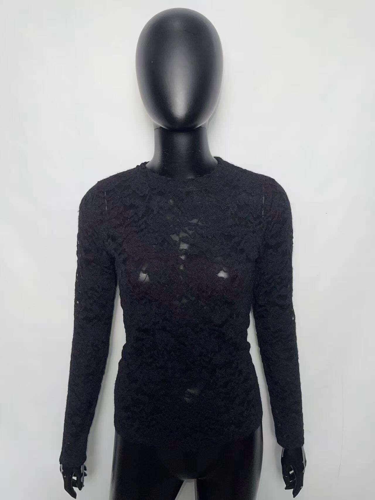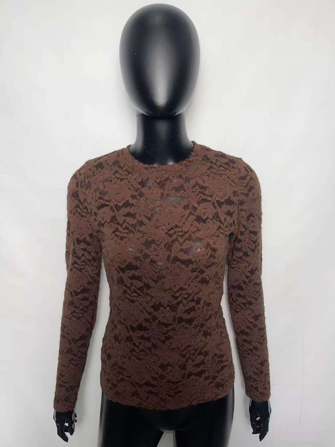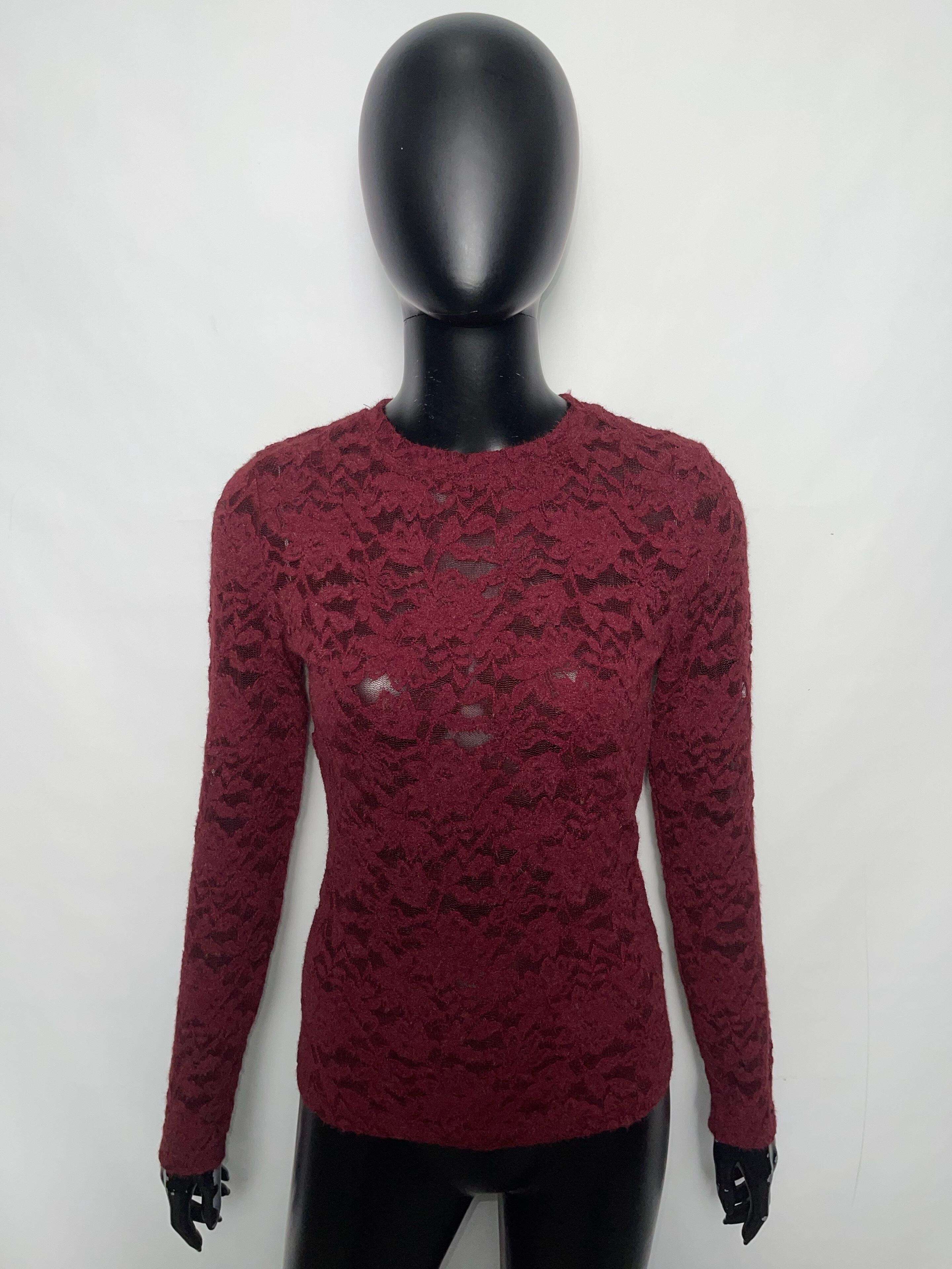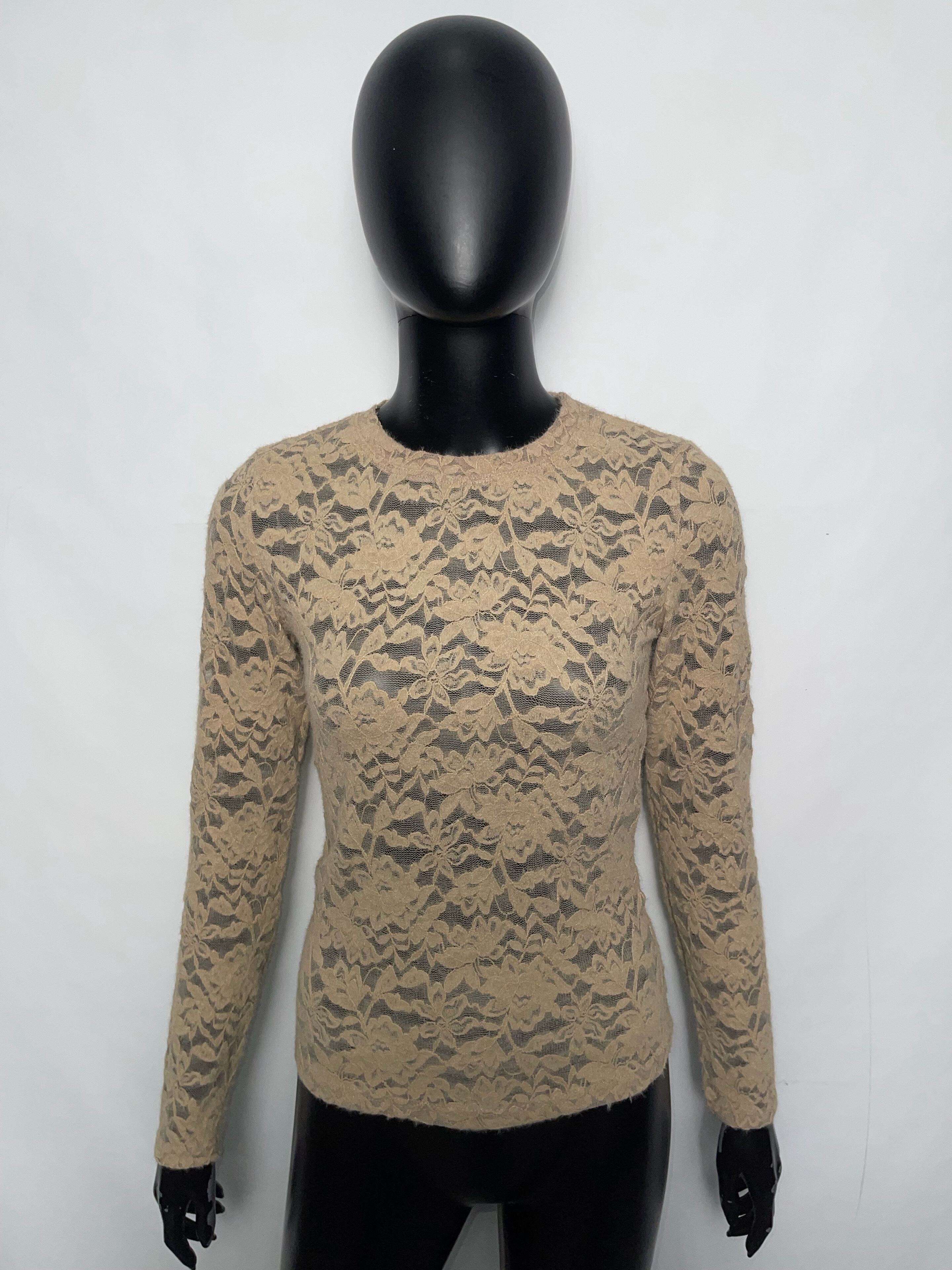 Koronkowa bluzka z długim rękawem, lekko transparentna, o kobiecym i eleganckim kroju, idealna na wyjątkowe okazje.
