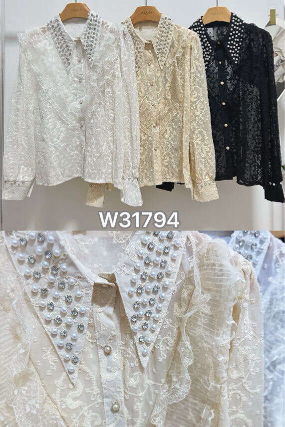 Koszule AMNESIA to idealna propozycja dla butików poszukujących nietuzinkowych modeli do swojej oferty. Dostępne w klasycznych kolorach – białym i beżowym, wykonane z wysokiej jakości materiału o fakturze koronki. Dekoracyjny kołnierzyk ozdobiony perełkami oraz subtelne guziki podkreślają ekskluzywny charakter produktu. Koszula świetnie sprawdzi się w stylizacjach zarówno biznesowych, jak i na wyjątkowe okazje – do eleganckich spodni, ołówkowych spódnic czy jeansów. Uniwersalny fason i dbałość o detale gwarantują satysfakcję Twoich klientek oraz przewagę konkurencyjną na rynku mody damskiej. Zamów do swojego sklepu wyjątkowe koszule, które przyciągają uwagę i budują prestiż Twojej oferty!