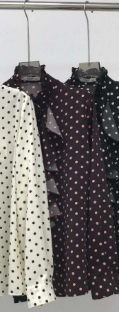 Koszula w modne grochy z elegancką falbaną, wykonana z przyjemnej, oddychającej mieszanki bawełny i wiskozy. Stylowy wybór na każdą okazję.