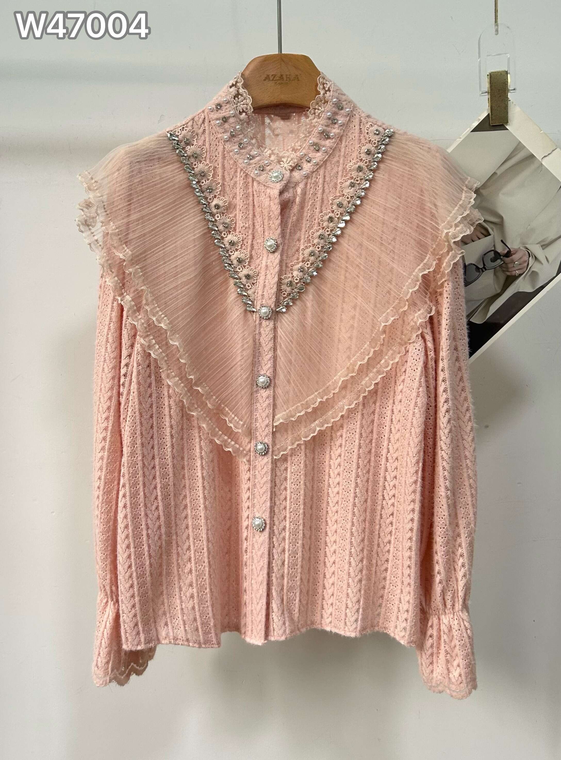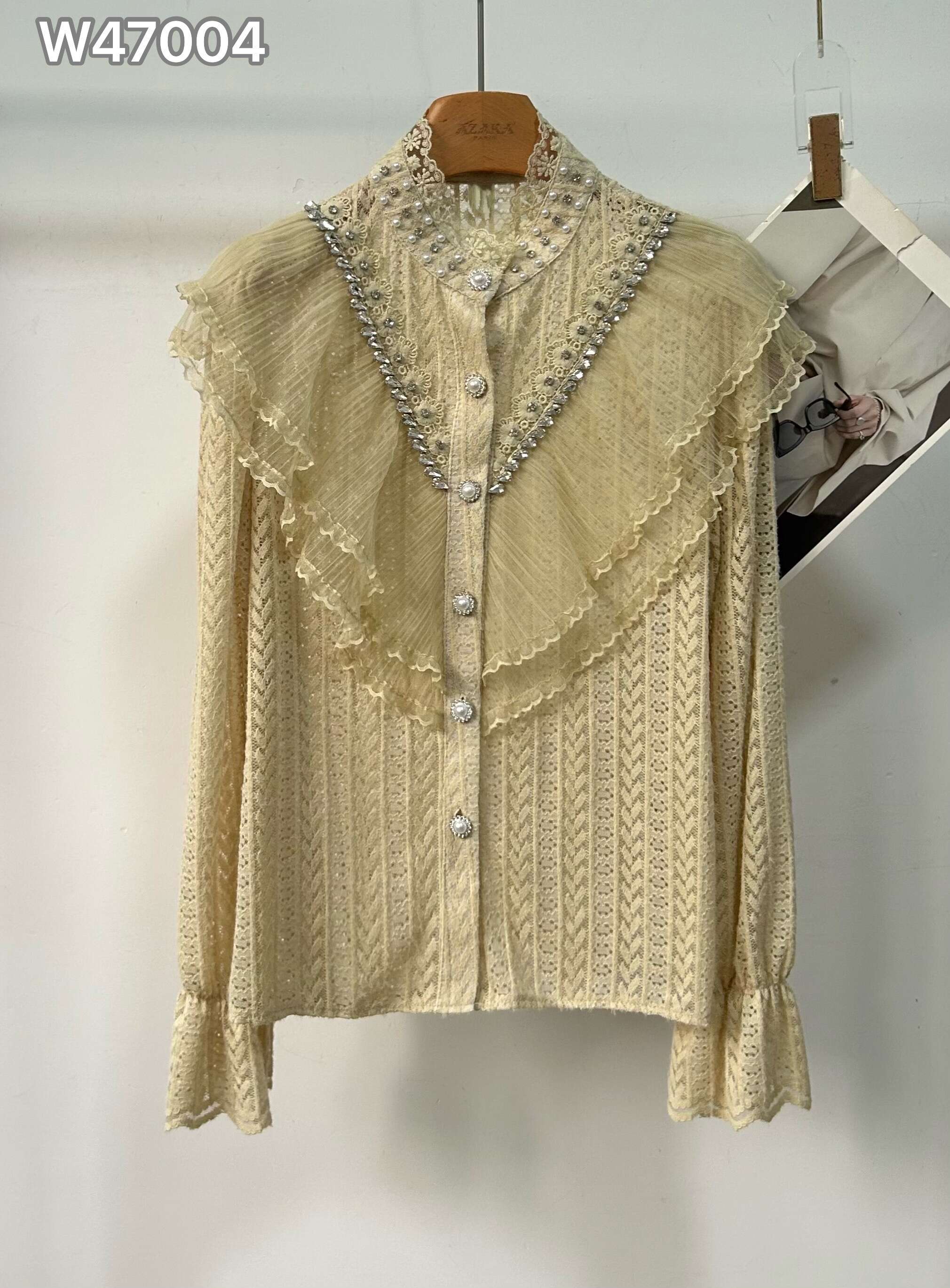 Elegancka koszula z koronką, ozdobnymi guzikami i efektownymi falbanami. Idealna na wyjątkowe okazje oraz do codziennych stylizacji.