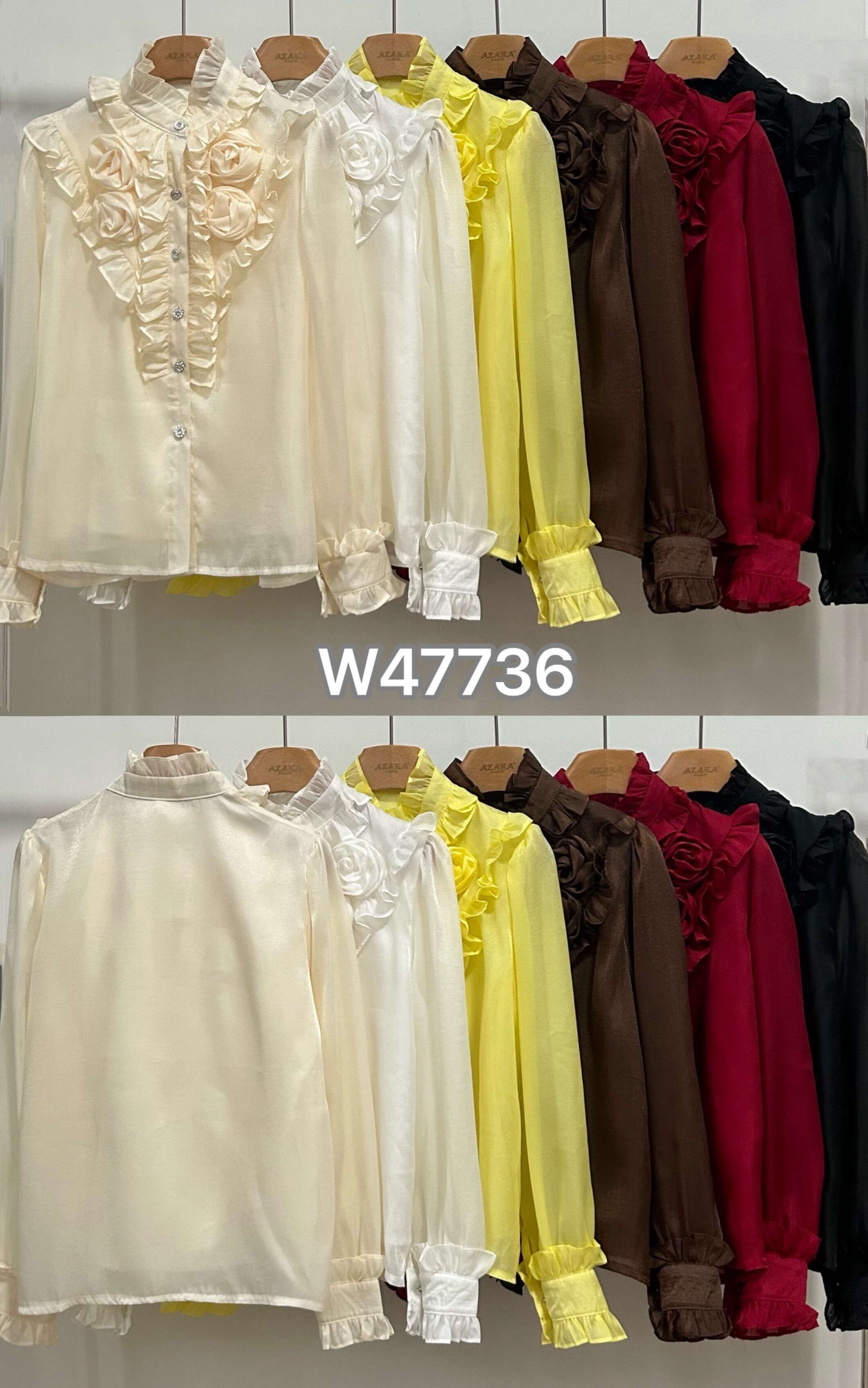 Oferowana koszula to propozycja, która wyróżni każdą kolekcję! Dostępna w dwóch klasycznych kolorach – czerwonym i białym, idealnie sprawdzi się na różnorodne okazje, od spotkań biznesowych po wyjątkowe wyjścia wieczorowe. Wysokiej jakości, lekka tkanina gwarantuje komfort noszenia, a wyjątkowe detale – takie jak marszczone falbany i ozdobne róże przy dekolcie – nadają całości modnego charakteru. Delikatne, błyszczące guziki podkreślają prestiżowy styl produktu oraz podnoszą estetykę każdej stylizacji. Szeroka gama rozmiarów ułatwi dopasowanie do różnych sylwetek. Wprowadź ten bestseller do swojej hurtowni i przyciągnij klientki poszukujące niebanalnych koszul!