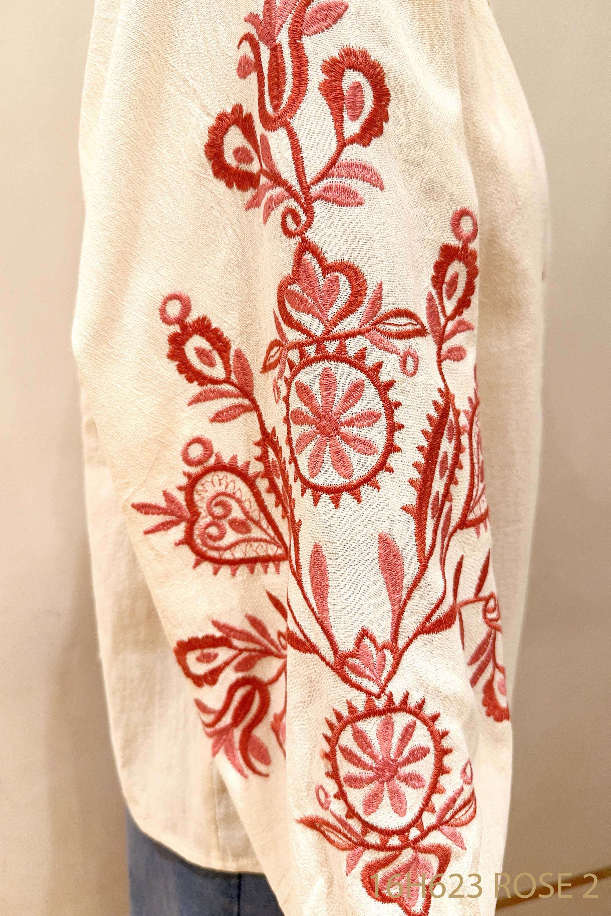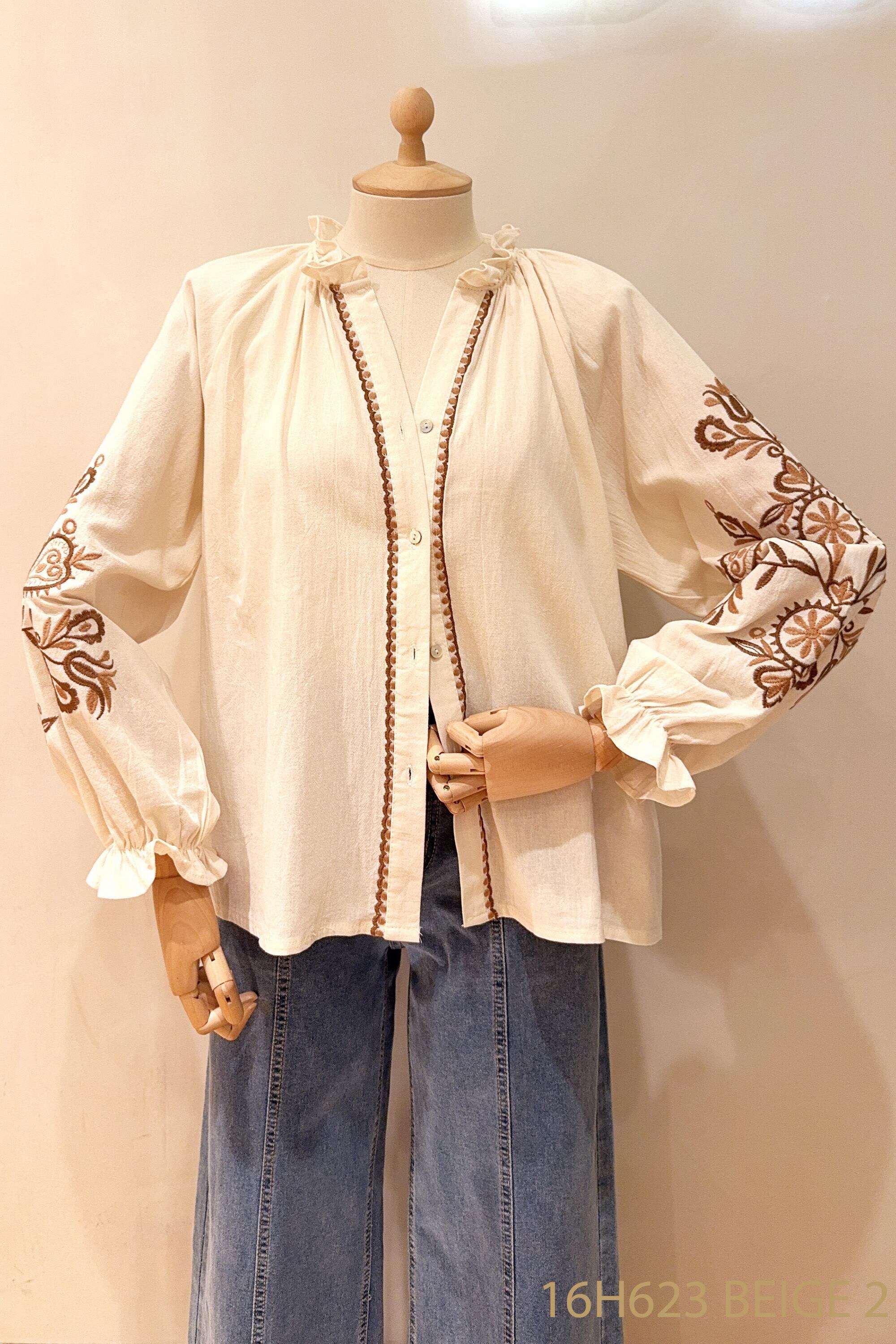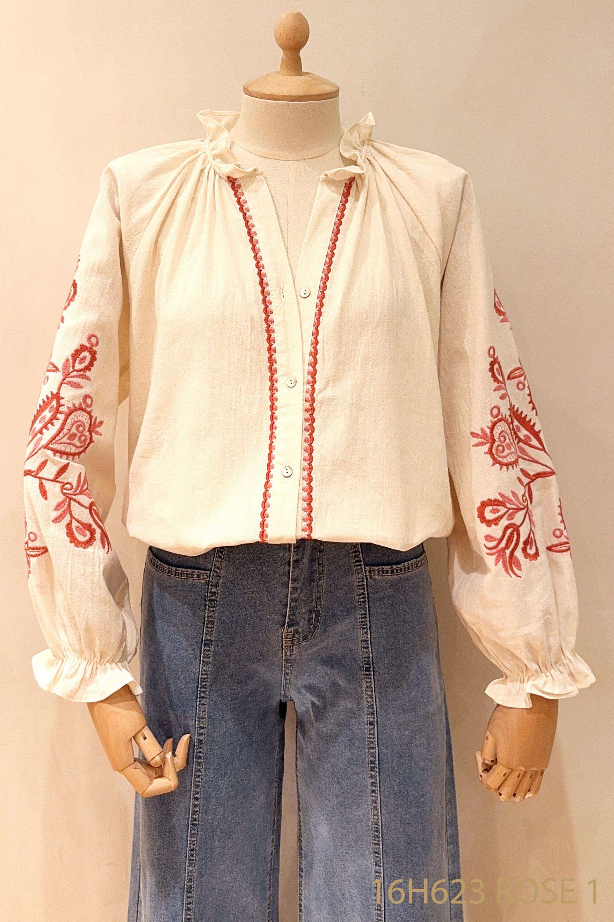 Koszula z efektownym haftem na rękawach, luźnym fasonem i delikatną tkaniną zapewnia komfort oraz unikalny styl każdego dnia.