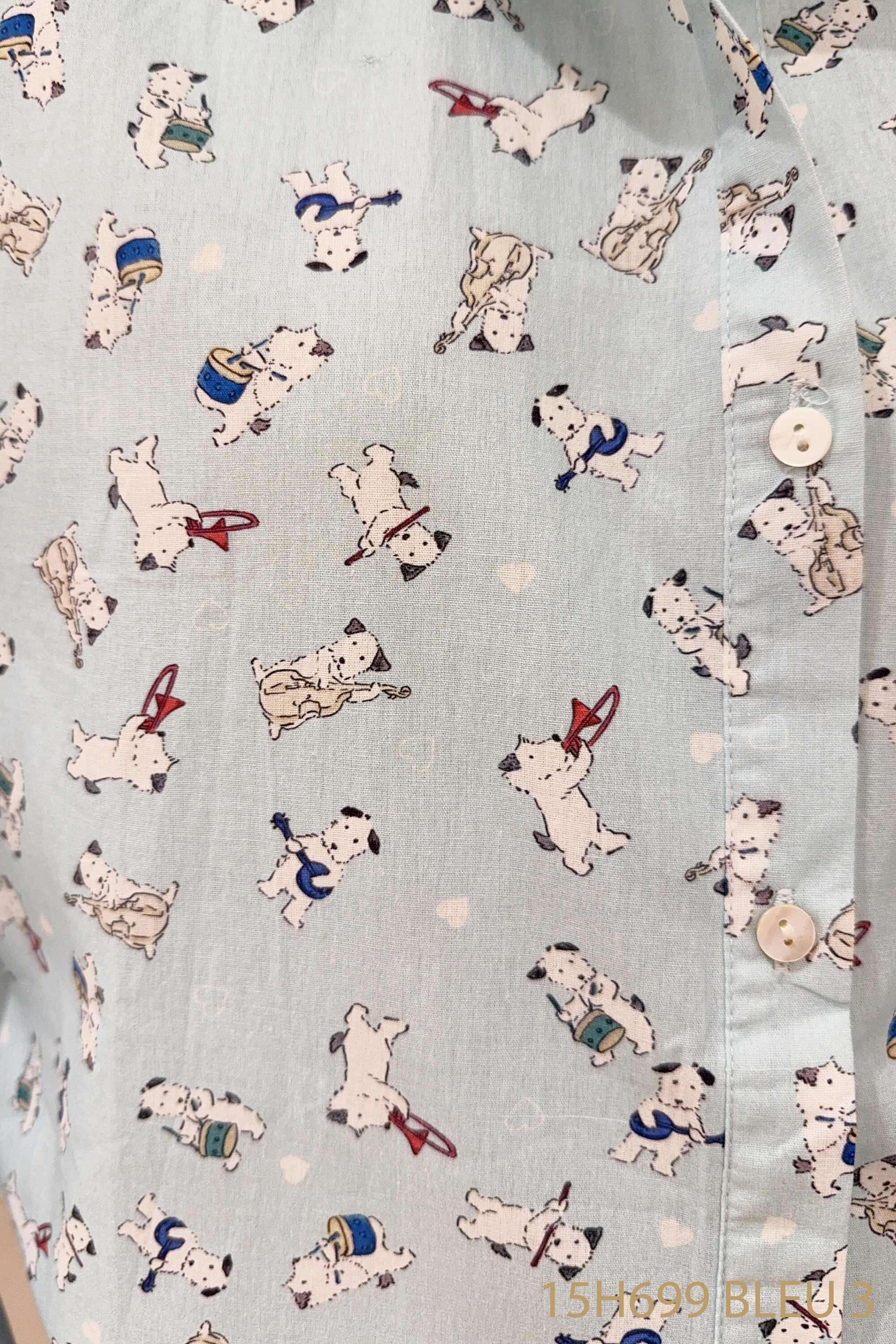 Lekka koszula o swobodnym kroju w modnym błękitnym kolorze, z uroczym nadrukiem i klasycznym kołnierzem. Zapewnia wygodę i świeży look na co dzień.