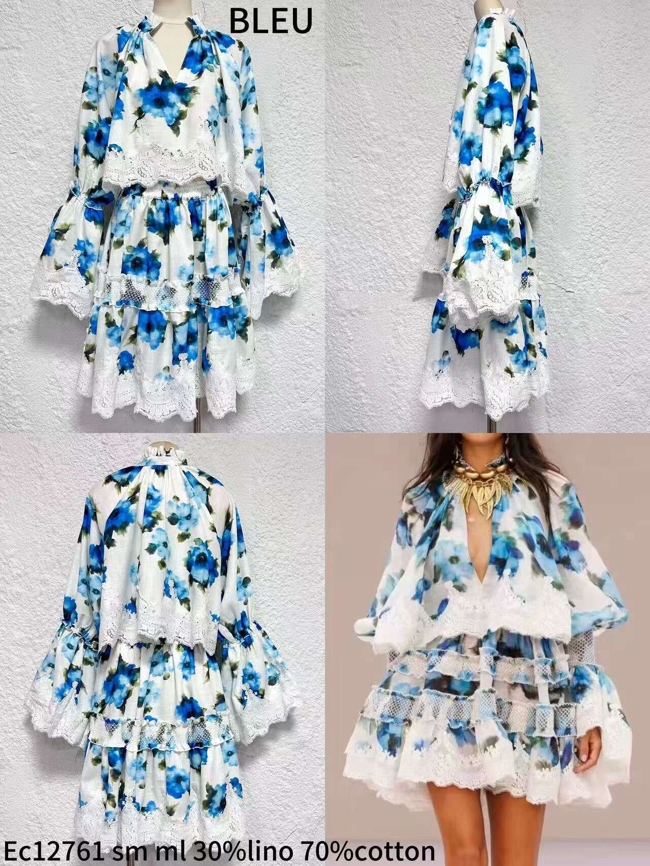 Komplet ISKENDER  to propozycja, która przyciąga wzrok efektownym błękitnym wzorem na jasnym tle oraz eleganckim wykończeniem z koronki. Wykonana z wysokiej jakości mieszanki 30% lnu i 70% bawełny, zapewnia komfort noszenia i przewiewność nawet w najcieplejsze dni. Lekko rozkloszowany fason, bufiaste rękawy i delikatne falbany świetnie podkreślają figurę i dodają stylu każdej stylizacji. Sukienka jest dostępna w kolorze błękitnym oraz w rozmiarach S, M i L, co pozwala dopasować ją do różnych typów sylwetek. To doskonały wybór do butików oraz sklepów, które chcą zaoferować klientkom modę na wysokim poziomie – zarówno na letnie przyjęcia, spacery, jak i codzienne wyjścia.