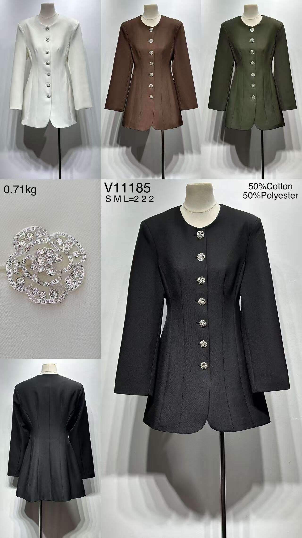 Przedstawiamy wyjątkowy żakiet, dostępny w ponadczasowych kolorach – czarnym i białym. Model wykonany z wysokiej jakości mieszanki 50% bawełny i 50% poliestru, co zapewnia wygodę noszenia oraz trwałość w użytkowaniu. Żakiet wyróżnia się dopracowanym fasonem podkreślającym sylwetkę oraz efektownymi guzikami w formie biżuteryjnych kwiatów. Idealny do wielu stylizacji biznesowych i codziennych – świetnie sprawdzi się jako baza profesjonalnych outfitów, ale też elegancki akcent na specjalne okazje. W ofercie hurtowej dostępne rozmiary S, M, L (pakiet 2-2-2). Postaw na asortyment, który oczaruje każdą klientkę!