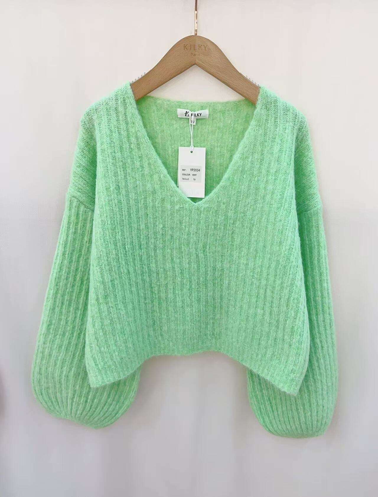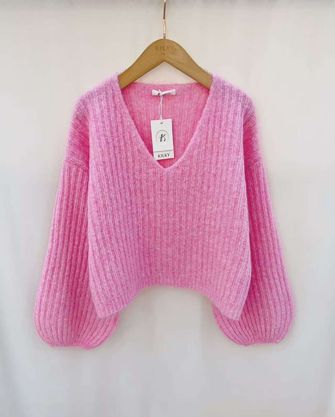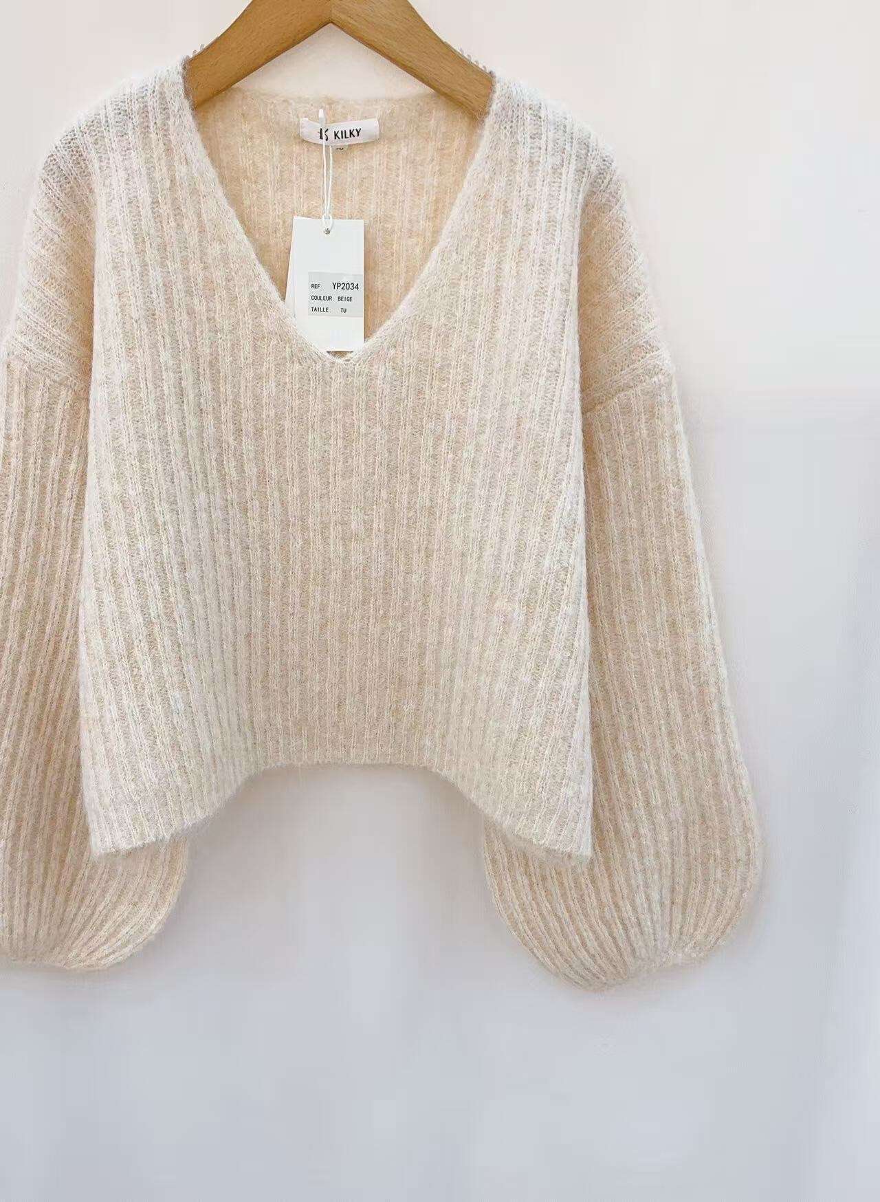 Miękki, puszysty sweter o kroju oversize z głębokim dekoltem V – gwarantuje wygodę i styl na co dzień.