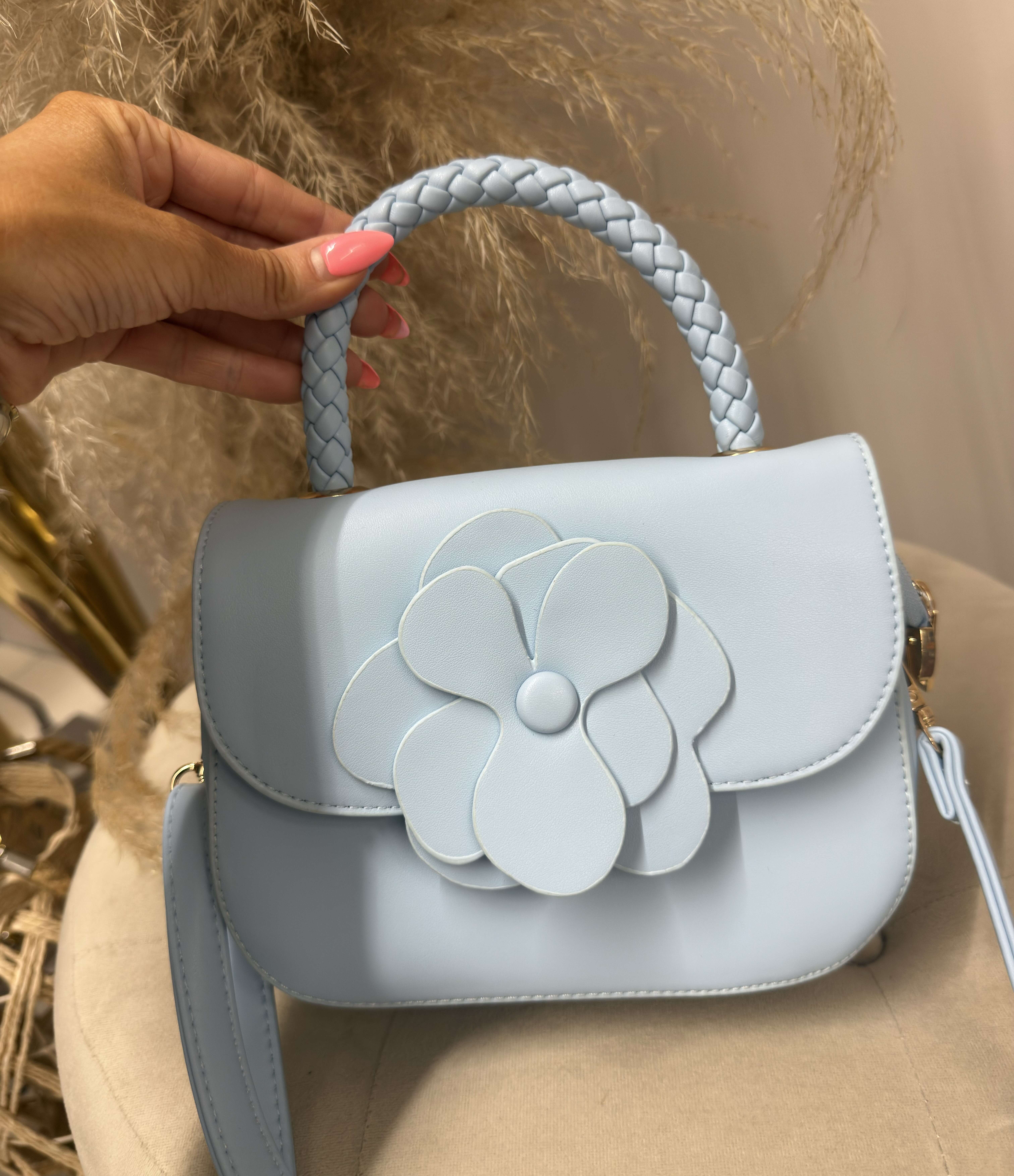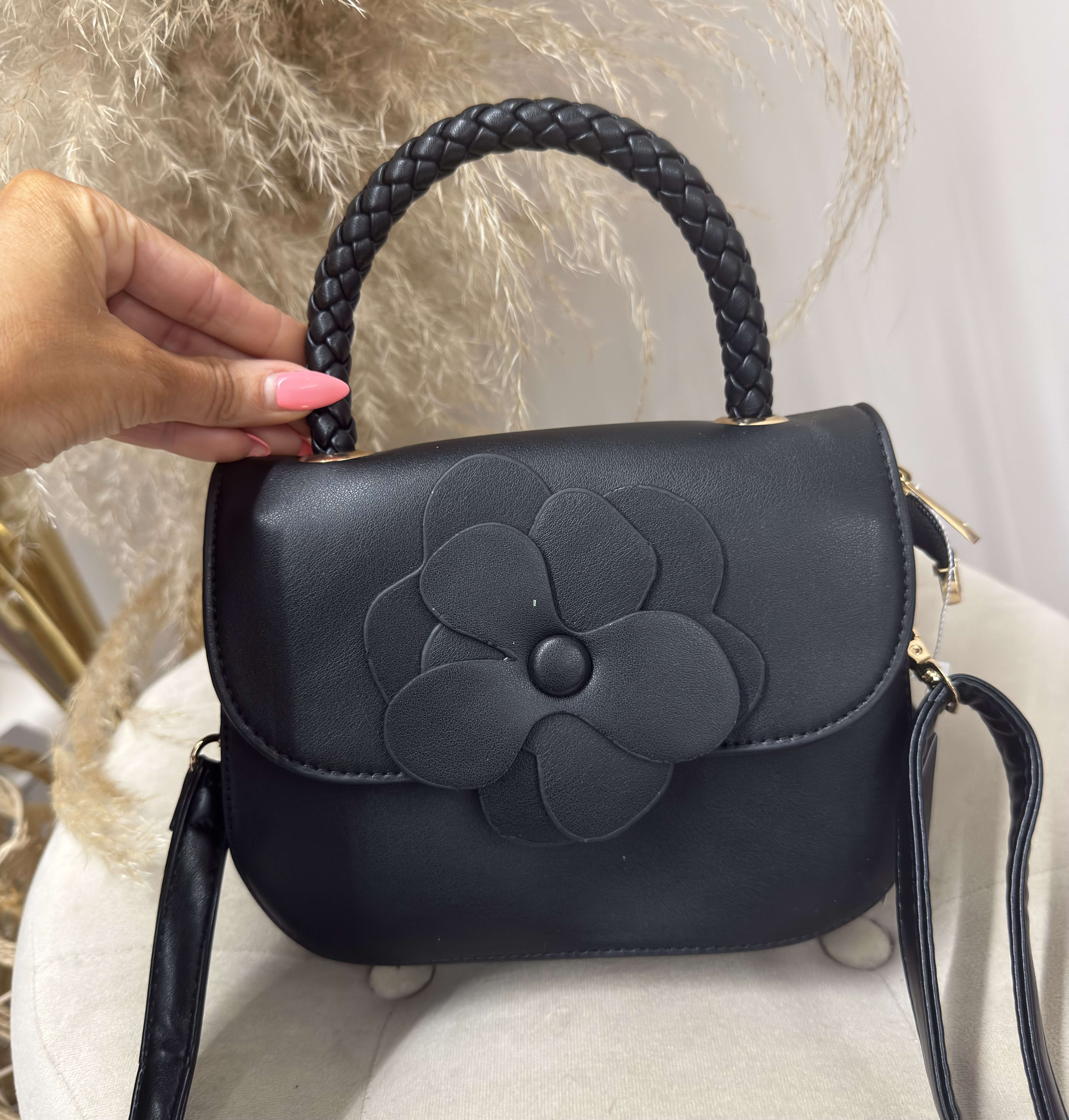 Stylowa torebka z plecioną rączką i kwiatowym motywem – idealny dodatek na każdą okazję.