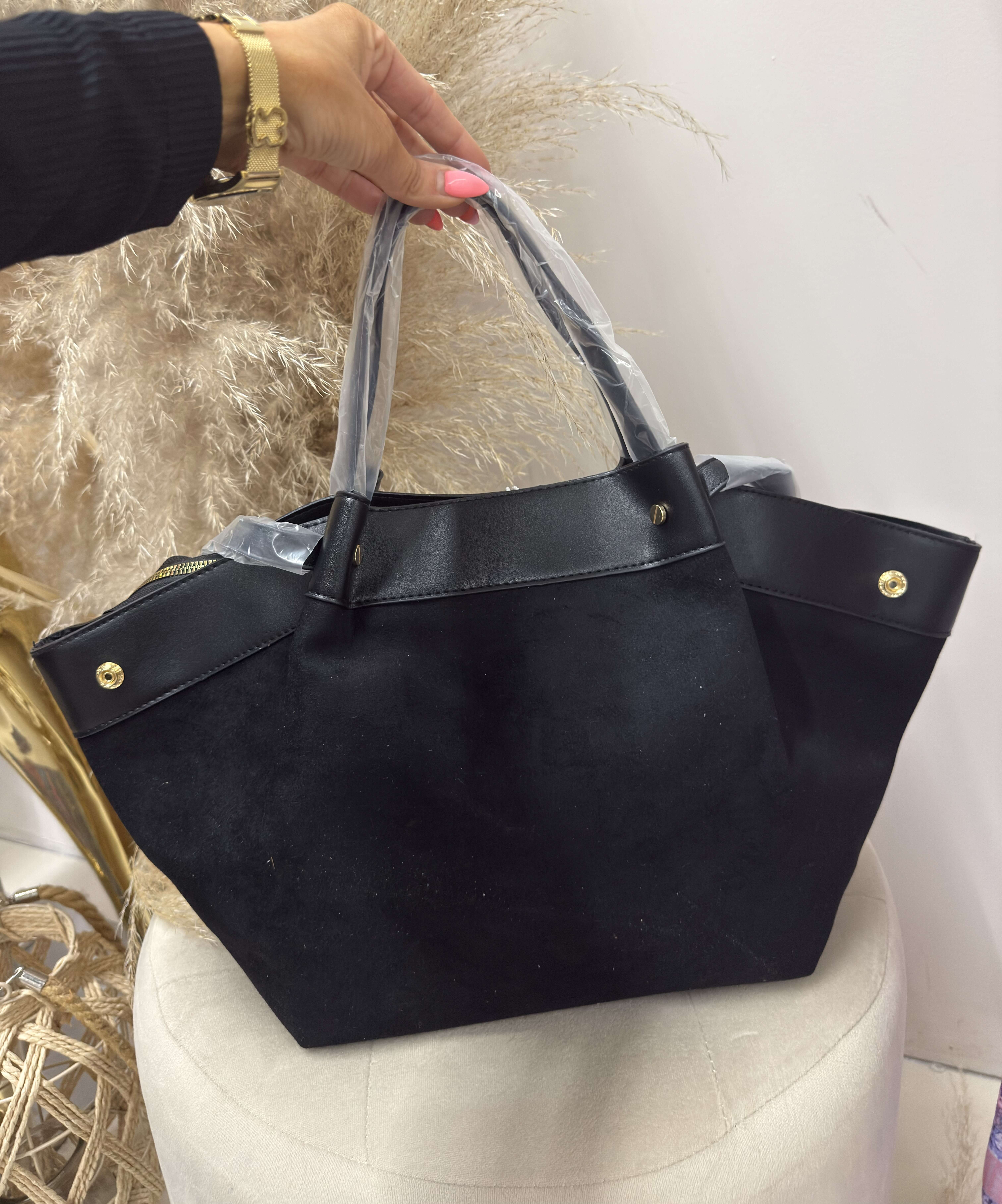 Stylowa torba o klasycznym kroju, wykonana z wysokiej jakości materiału, z wygodnymi uchwytami i złotymi detalami.