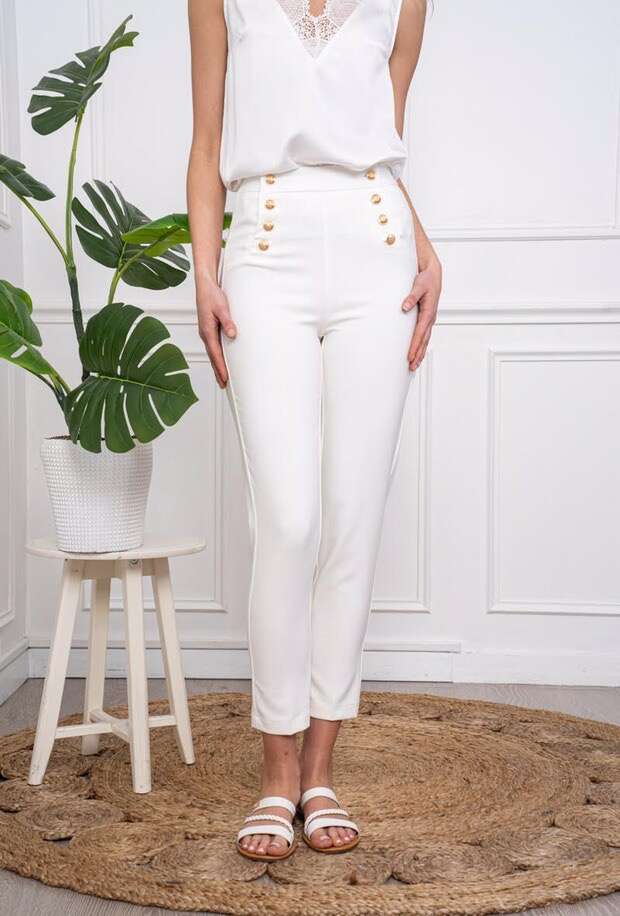 Spodnie LIVIAw kolorze czarnym to must-have każdej kolekcji odzieży damskiej. Wysoki stan podkreśla sylwetkę, a ozdobne złote guziki nadają całości szyku i niepowtarzalnego stylu. Elastyczny, przyjazny dla skóry materiał gwarantuje wygodę przez cały dzień. Uniwersalny czarny kolor sprawia, że spodnie doskonale sprawdzą się zarówno w stylizacjach biznesowych, jak i na eleganckie wyjścia czy codzienne spotkania. Szeroki wybór rozmiarów pozwala z łatwością dopasować produkt do potrzeb Twoich klientów. Postaw na wysoką jakość oraz ponadczasowy styl w swojej hurtowni!