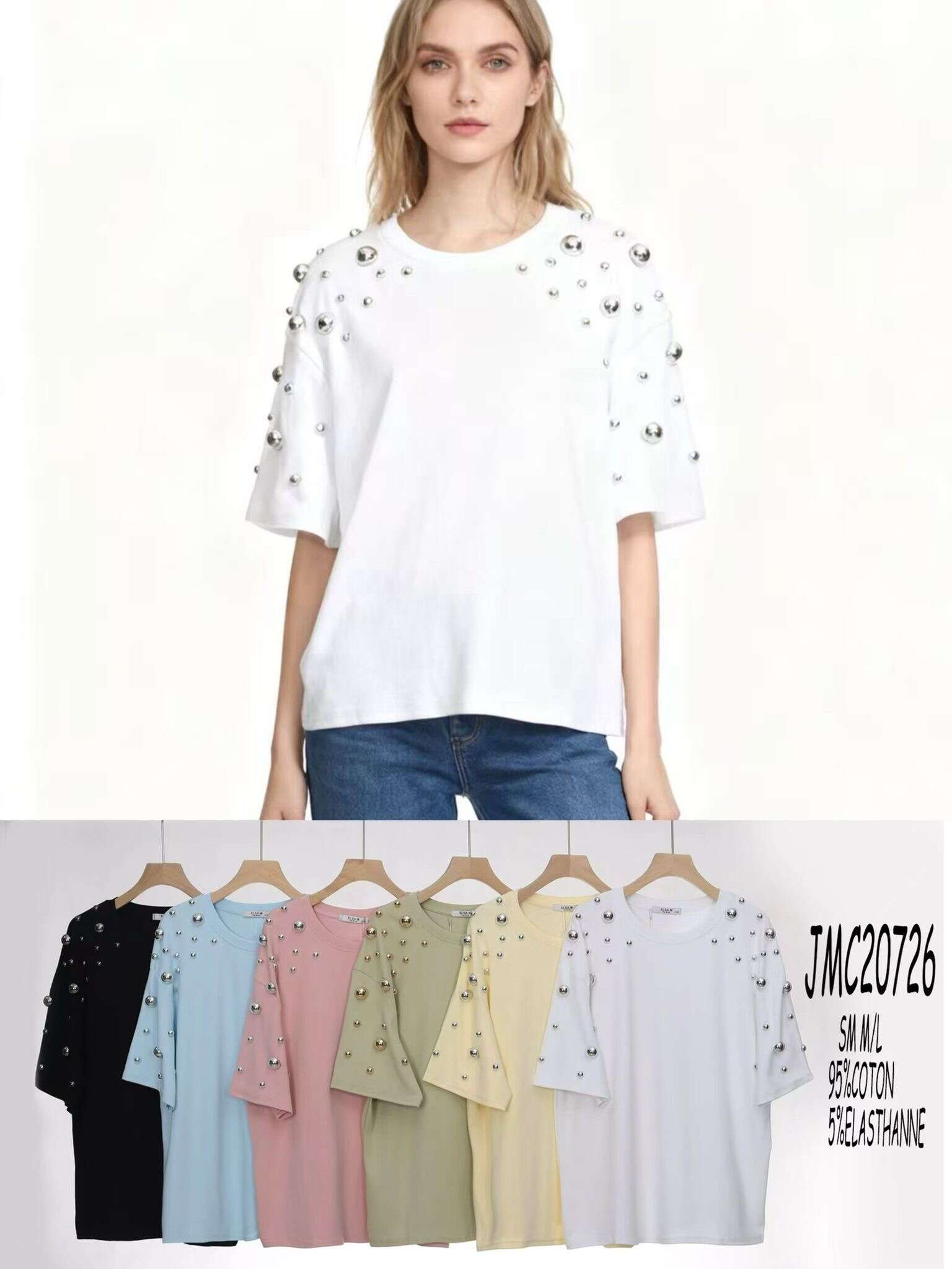 Bluzka SPARKLE to propozycja, która łączy wygodę z unikalnym stylem. Dostępna w trzech topowych kolorach: czekoladowym, czarnym i białym, idealnie wpisuje się w aktualne trendy. Wysokiej jakości materiał (95% bawełna, 5% elastan) gwarantuje oddychalność oraz komfort noszenia nawet przez wiele godzin. Ozdobne perły na rękawach dodają bluzce wyjątkowego charakteru i sprawiają, że świetnie nadaje się zarówno do codziennych, jak i eleganckich stylizacji. Dostępność rozmiarów S/M i M/L pozwala dopasować bluzkę do różnych sylwetek, co czyni ten model atrakcyjnym wyborem do hurtowej oferty. Postaw na oryginalność i zyskaj produkt, który przyciągnie uwagę każdej klientki!