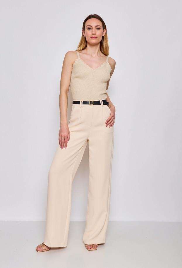 Szerokie, stylowe spodnie o eleganckim kroju, z wysokim stanem i praktycznymi kieszeniami – kwintesencja wygody i klasy.