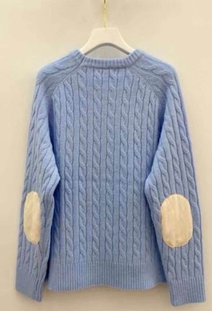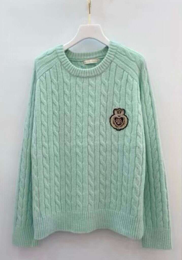 Klasyczny sweter damski o splocie warkoczowym z elegancką aplikacją, zapewniający komfort i ponadczasowy styl.