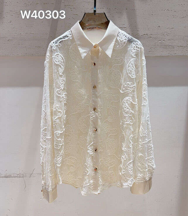 Elegancka koszula z transparentnej koronki, klasyczny kołnierzyk, zapięcie na guziki, stylowy wybór na wyjątkowe okazje.