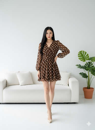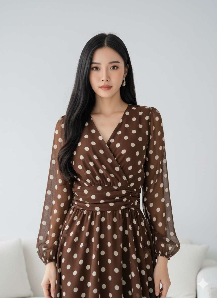 Sukienka MODALIO T to modny wybór dla każdej hurtowni poszukującej bestsellerów wśród damskiej odzieży. Dostępna w głębokim czekoladowym kolorze, ozdobiona klasycznym wzorem w białe grochy – dodaje stylizacji nuty retro i świeżości. Lekki, przewiewny materiał i kopertowy fason zapewniają wygodę oraz dopasowanie do każdej sylwetki. Długie rękawy i delikatne wiązanie w talii podkreślają kobiecość, czyniąc tę sukienkę idealną zarówno na co dzień, jak i na wyjątkowe okazje. Doskonała na sezon wiosna/lato, sprawdzi się w ofertach sklepów internetowych oraz butików z odzieżą damską.