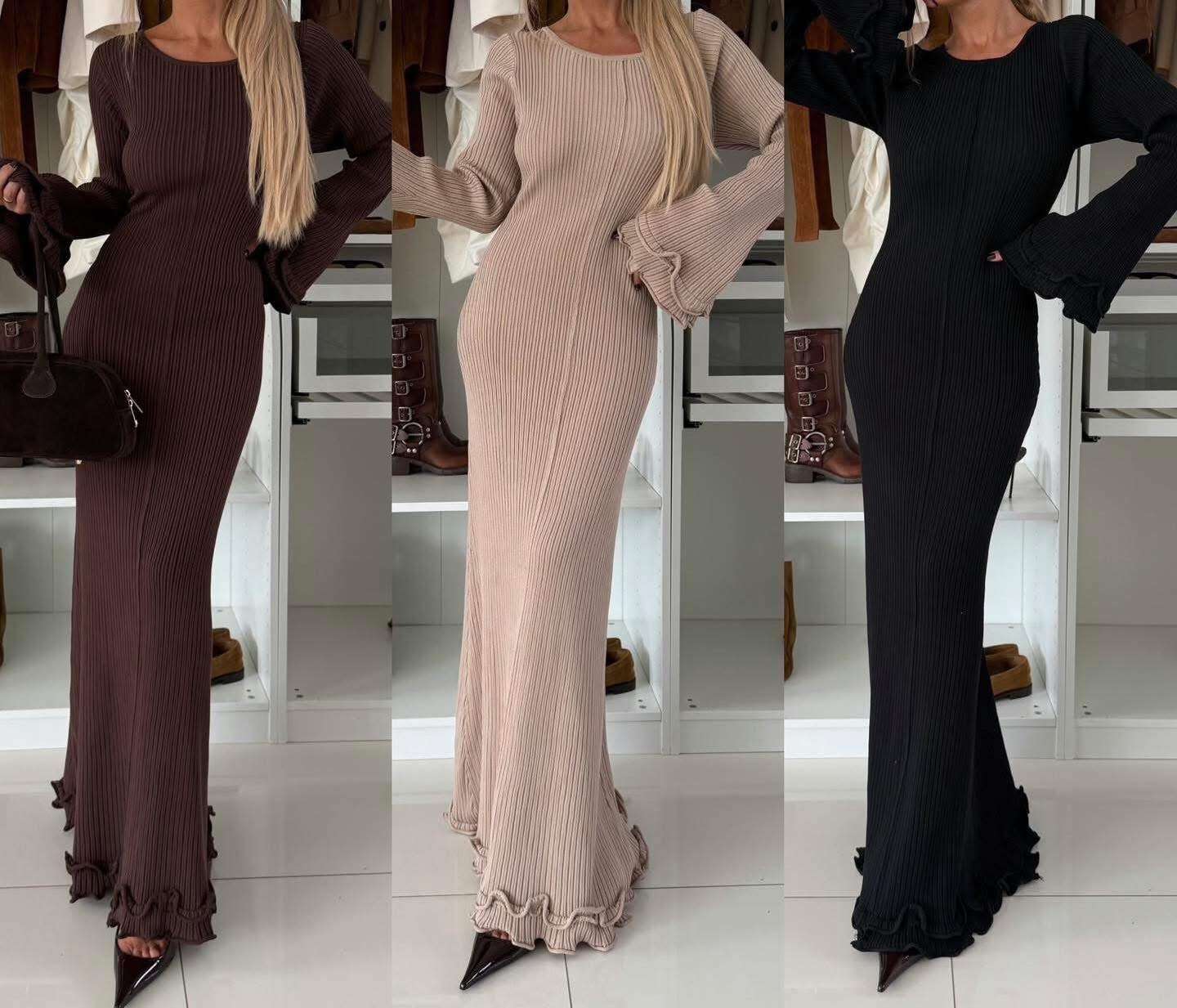 Sukienka CHARMING to doskonała propozycja dla sklepów poszukujących uniwersalnych, stylowych modeli. Prążkowany materiał wysokiej jakości doskonale dopasowuje się do sylwetki, podkreślając atuty figury, a jednocześnie zapewnia komfort i swobodę ruchów. Efektowne falbanki przy rękawach dodają całości wdzięku oraz subtelnej elegancji. Dostępna w modnych, ciepłych kolorach: czekoladowym i cappuccino, idealnie wpisuje się w najnowsze trendy. Sukienka sprawdzi się zarówno w codziennych stylizacjach, jak i podczas wyjątkowych wyjść – casual, biznes czy wieczór. Szeroka rozmiarówka pozwala dopasować produkt do różnych klientek, czyniąc go pożądanym wyborem w ofercie hurtowej.