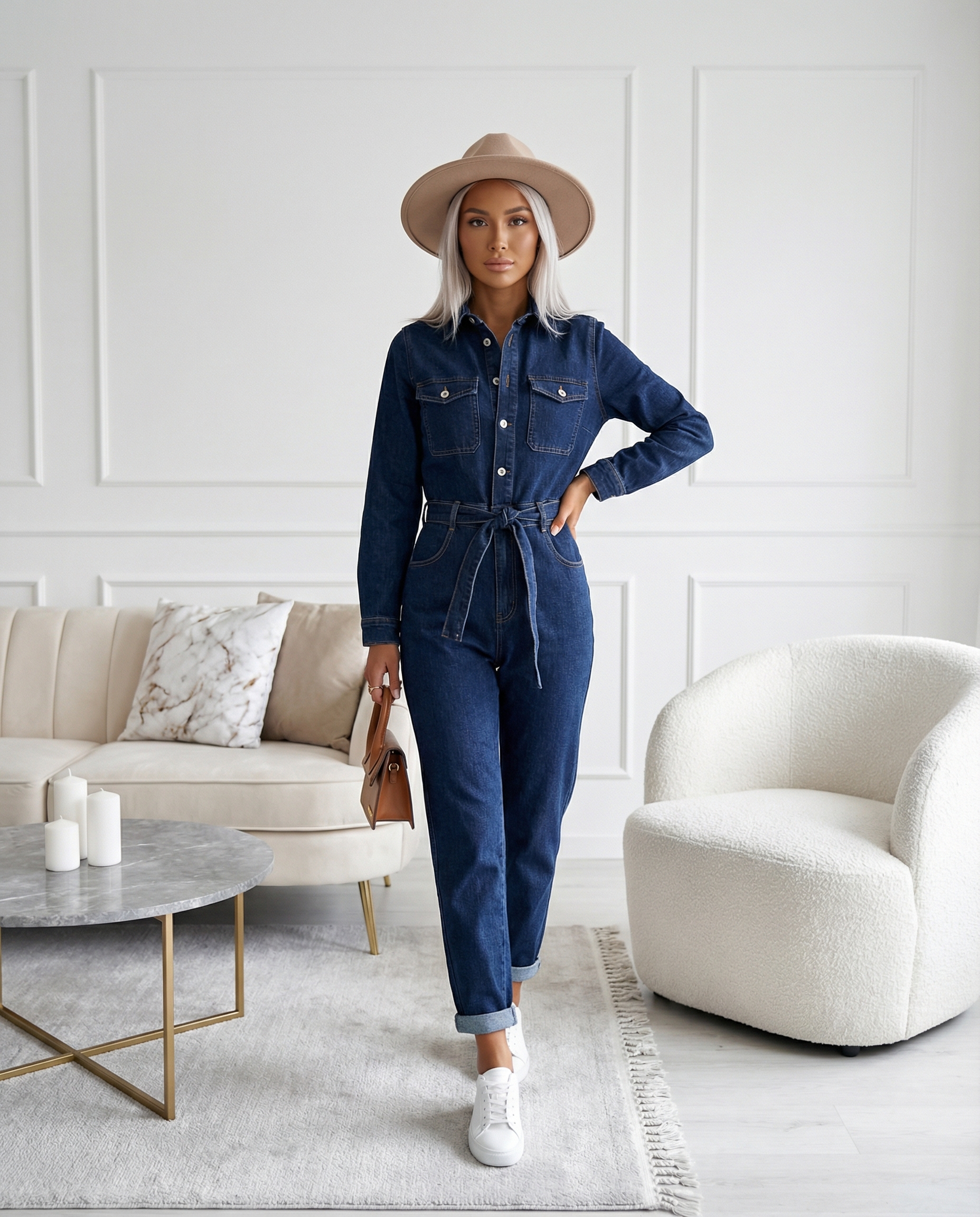 Dodaj swojej ofercie must-have tego sezonu – klasyczny kombinezon w modnym, jeansowym wydaniu. Model dostępny jest w ponadczasowym kolorze jeansowym oraz szerokiej gamie rozmiarów, co pozwala trafić w gusta większości klientek. Starannie wyselekcjonowany materiał łączy trwałość z wygodą użytkowania. Praktyczne kieszenie, ozdobne przeszycia oraz wiązanie w pasie podkreślają atuty sylwetki i zapewniają komfort ruchu przez cały dzień. Kombinezon doskonale sprawdzi się zarówno w casualowych stylizacjach, jak i na bardziej eleganckie okazje, w połączeniu z odpowiednimi dodatkami. To uniwersalny i modny produkt, który doda świeżości każdej hurtowej kolekcji damskiej odzieży.